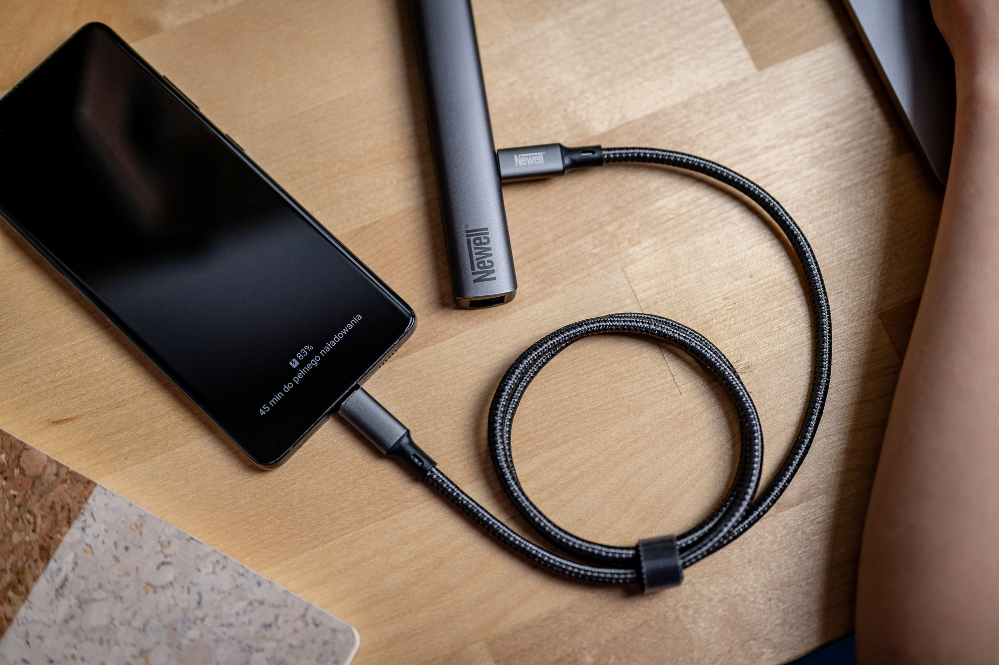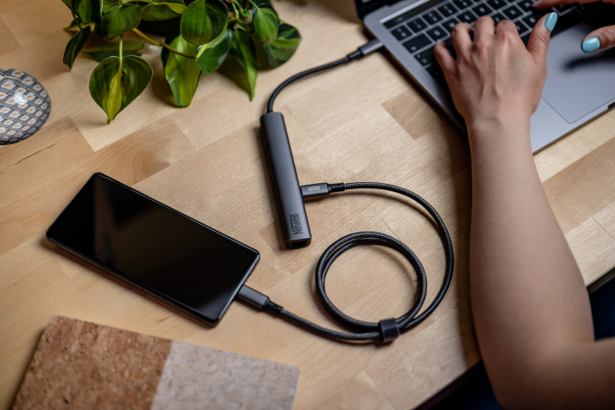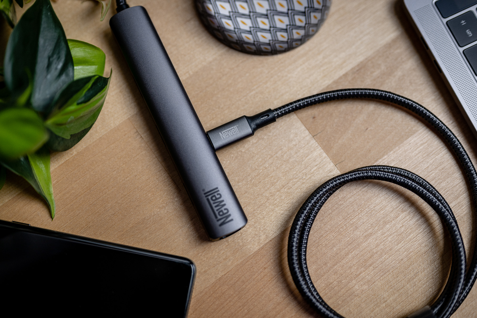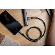 Das ein Meter lange USB-C-USB-C 4.0-Kabel von Newell ist mit einer geflochtenen Hülle aus starken Nylonfasern gesichert. Dieses Design reduziert das Risiko des Verhedderns und verlängert die Lebensdauer des Kabels effektiv. Schutz vor Beschädigungen bieten auch die Kontaktgehäuse aus Aluminium, die nicht nur langlebig sind, sondern auch perfekt mit den modernen Standards des minimalistischen Designs übereinstimmen.