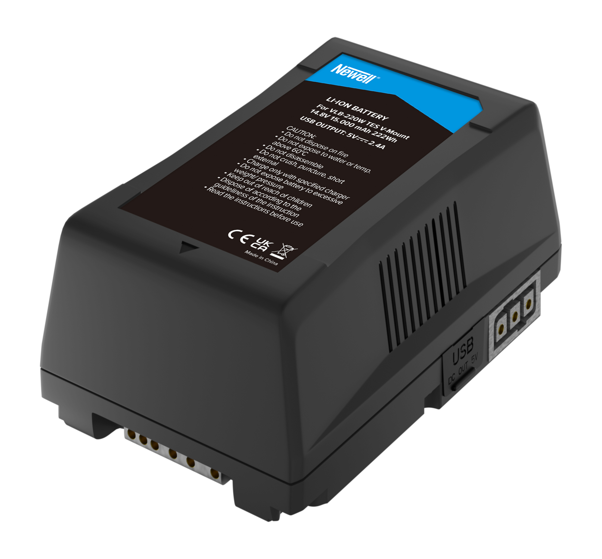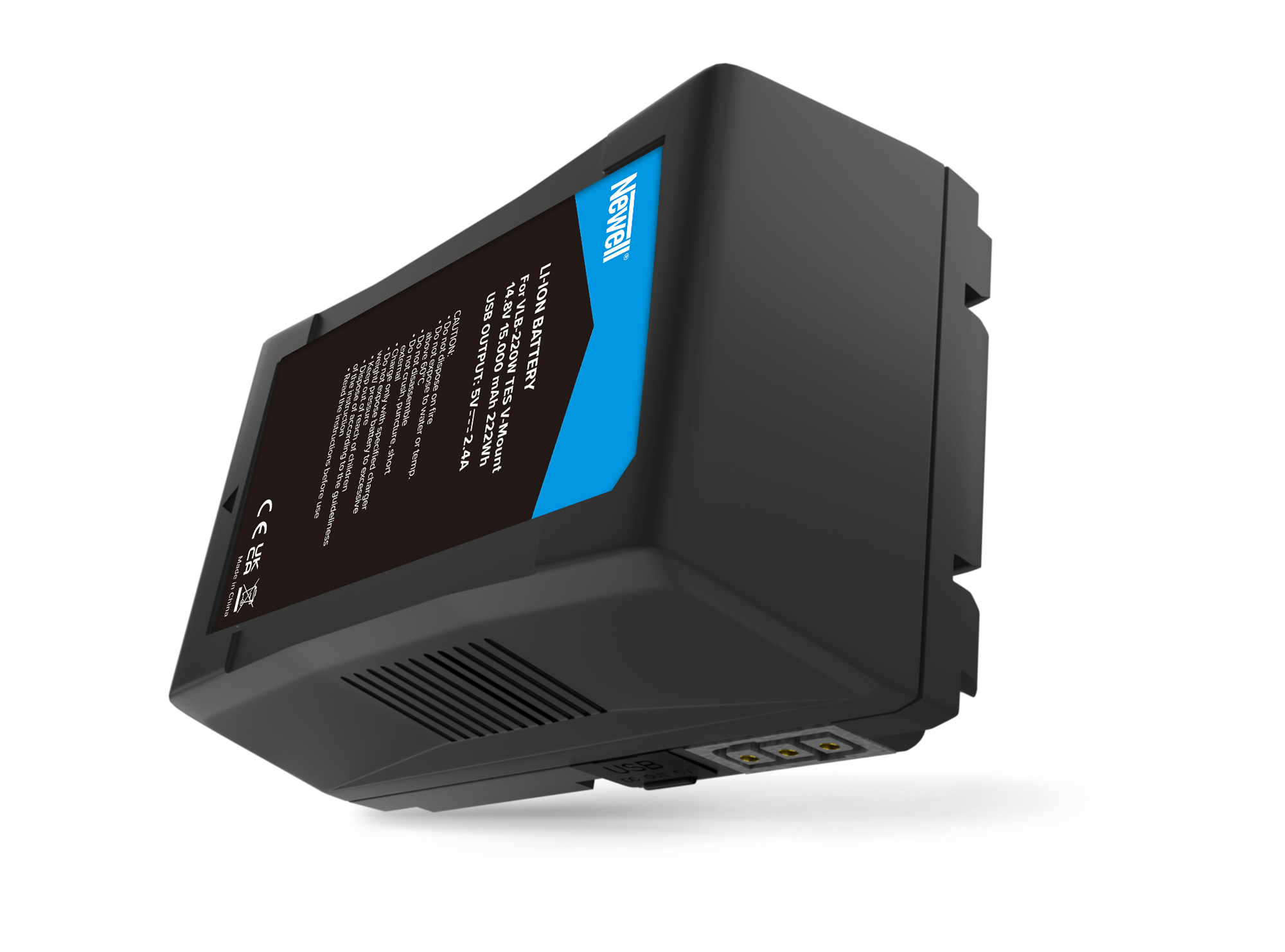 - D-Tap-Buchse - Der Newell VLB-220W TES V-Mount-Akku kann mit einem D-Tap-Ladegerät geladen werden (einschließlich Newell D-Tap 16,8 V 5 A 16,8 V 4 A).