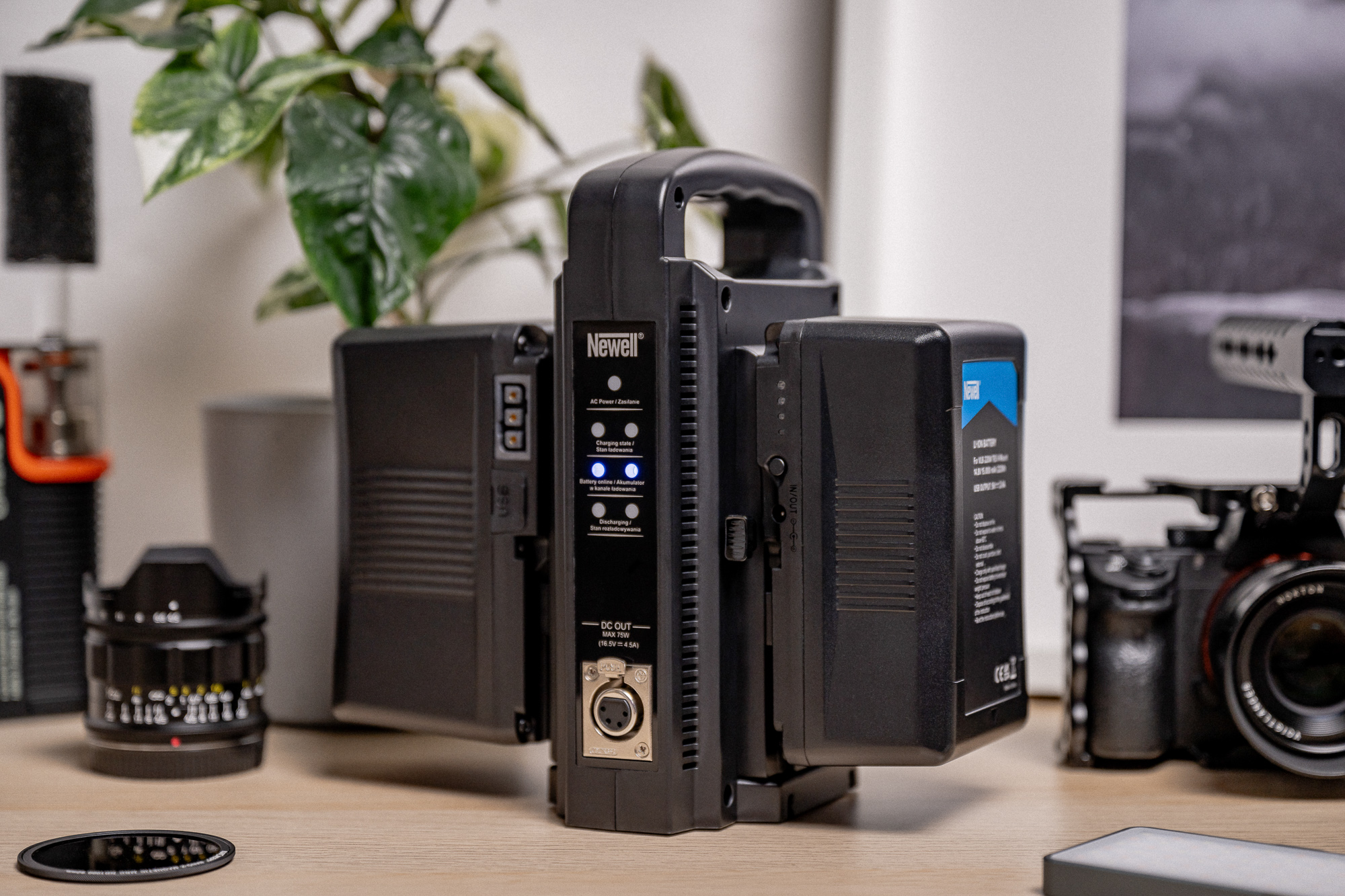 - kompatibel mit V-Mount-Ladegeräten und -Stationen (einschließlich Newell BP-4CH oder Newell BP-4CHT)