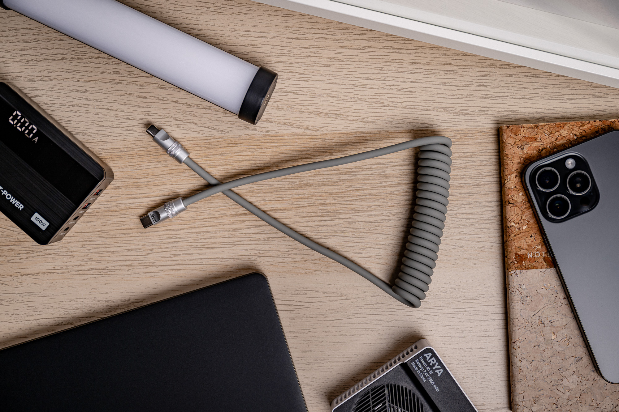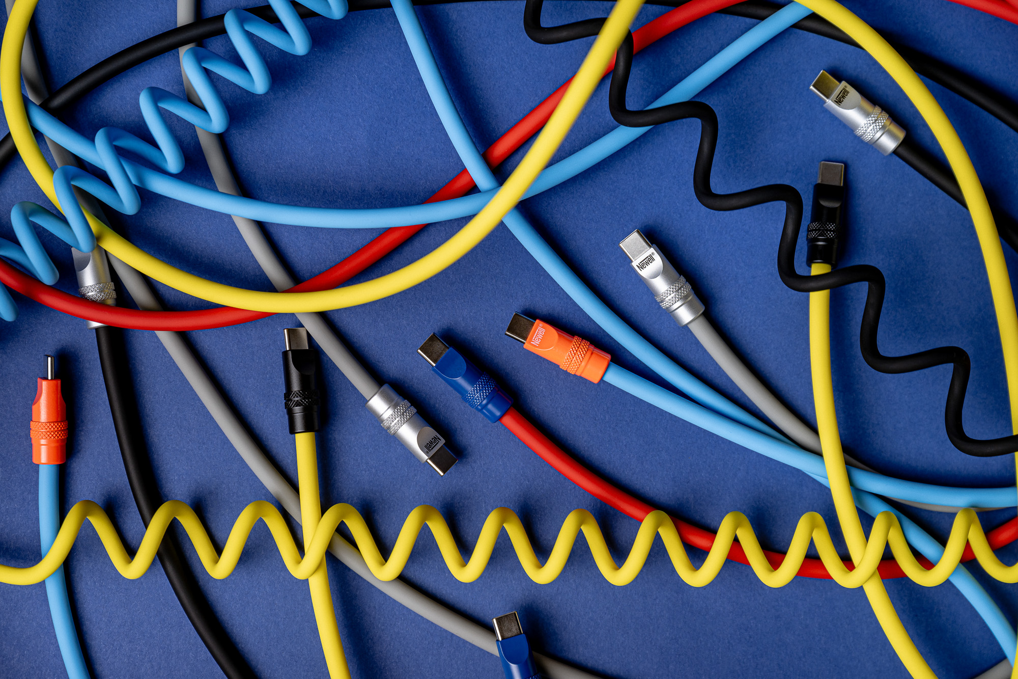 Kabel Newell USB-C - USB-C 100 W, 1,5m, silikonowy, spiralny, szary