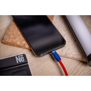 Kabel Newell USB-C - USB-C 100 W, 1,5m, silikonowy, spiralny, czerwono - granatowy