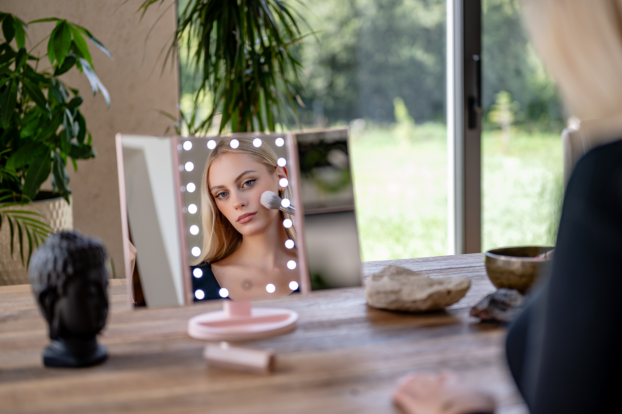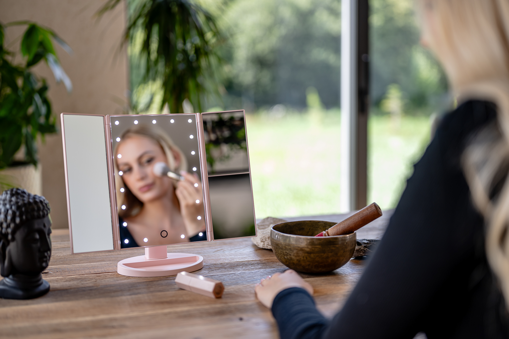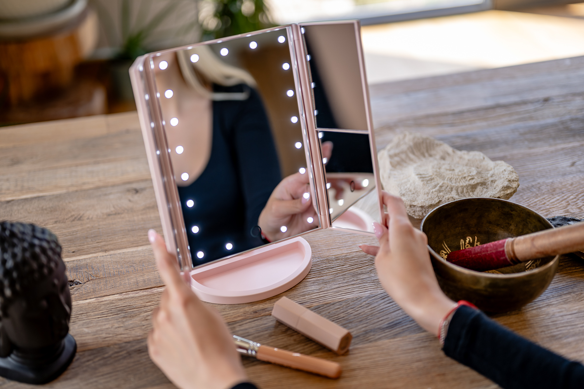 Lusterko do makijażu Humanas HS-ML04 z podświetleniem LED - różowe
