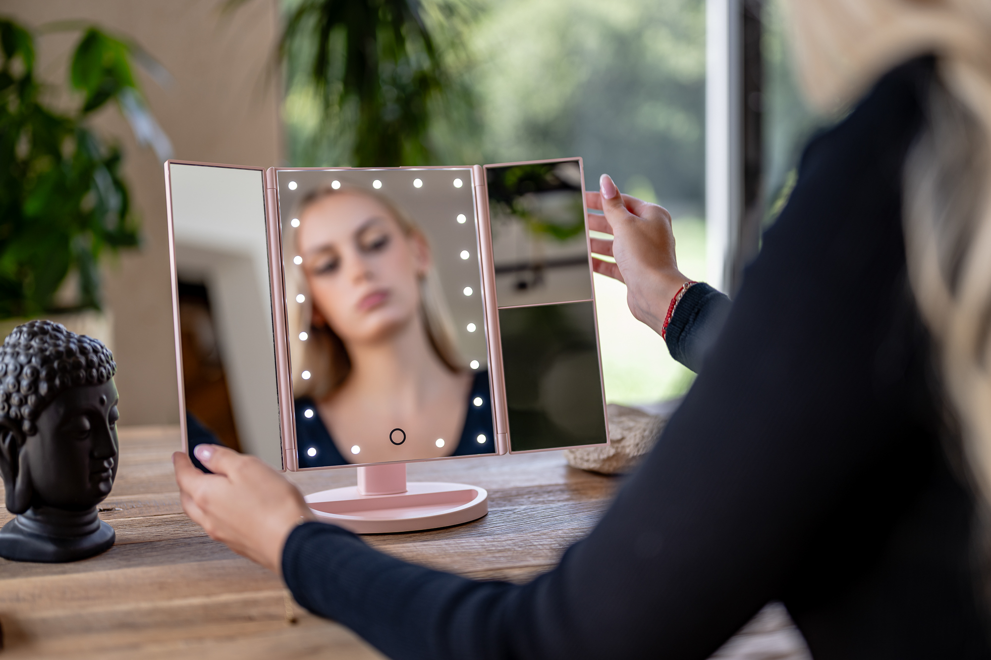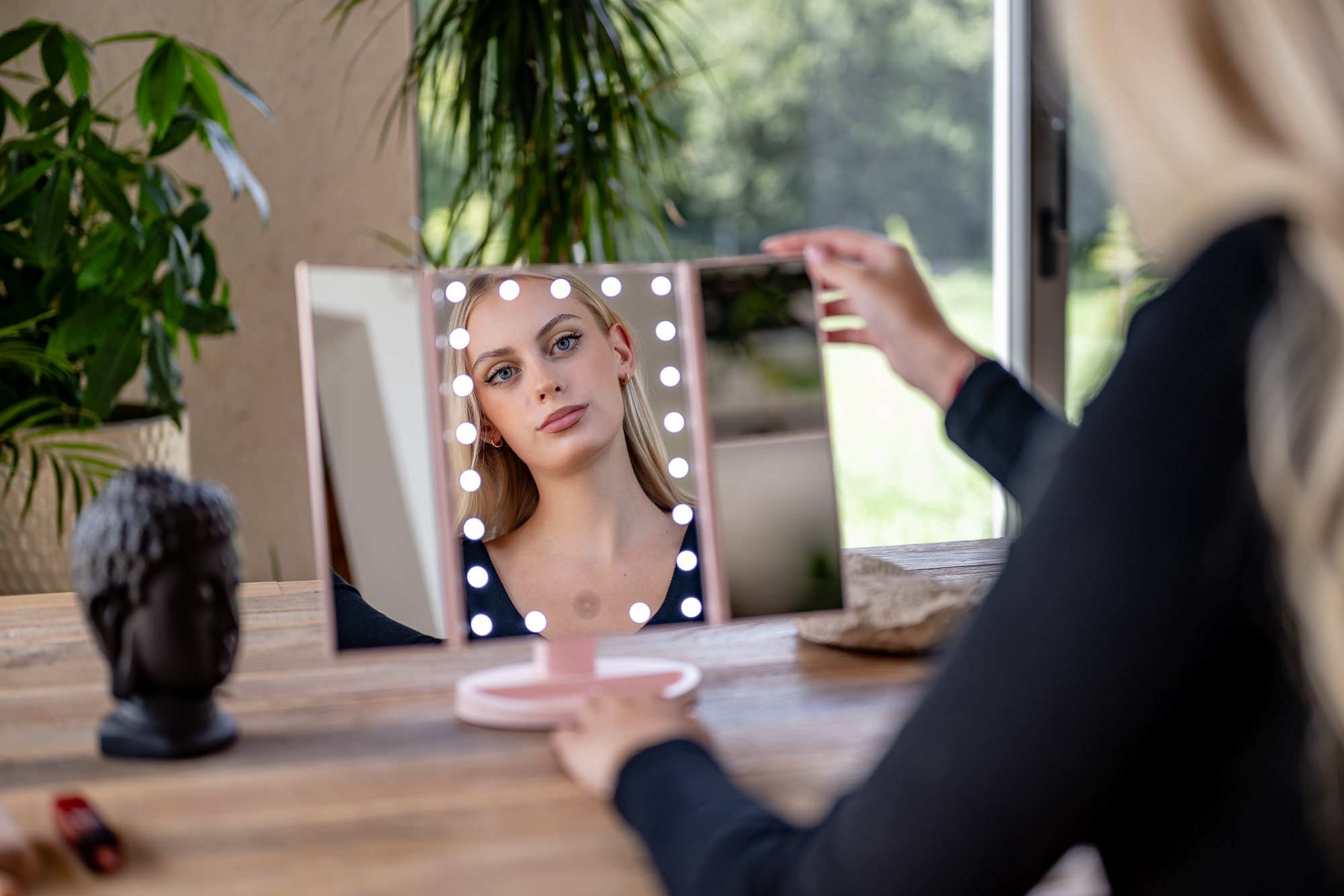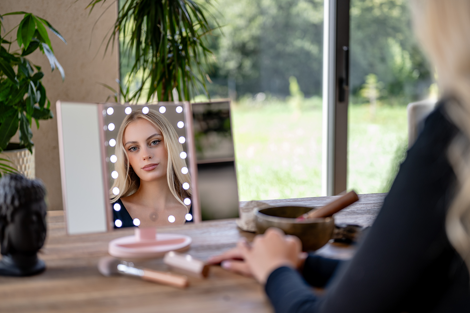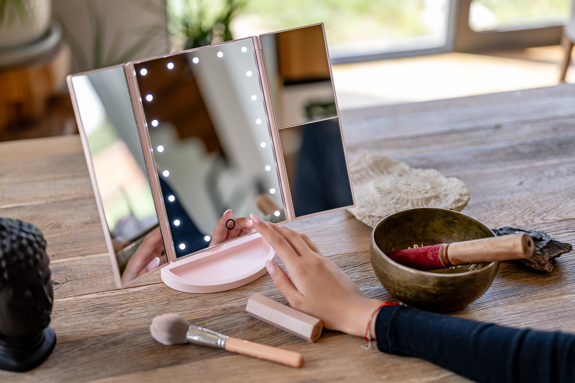 Lusterko do makijażu Humanas HS-ML04 z podświetleniem LED - różowe