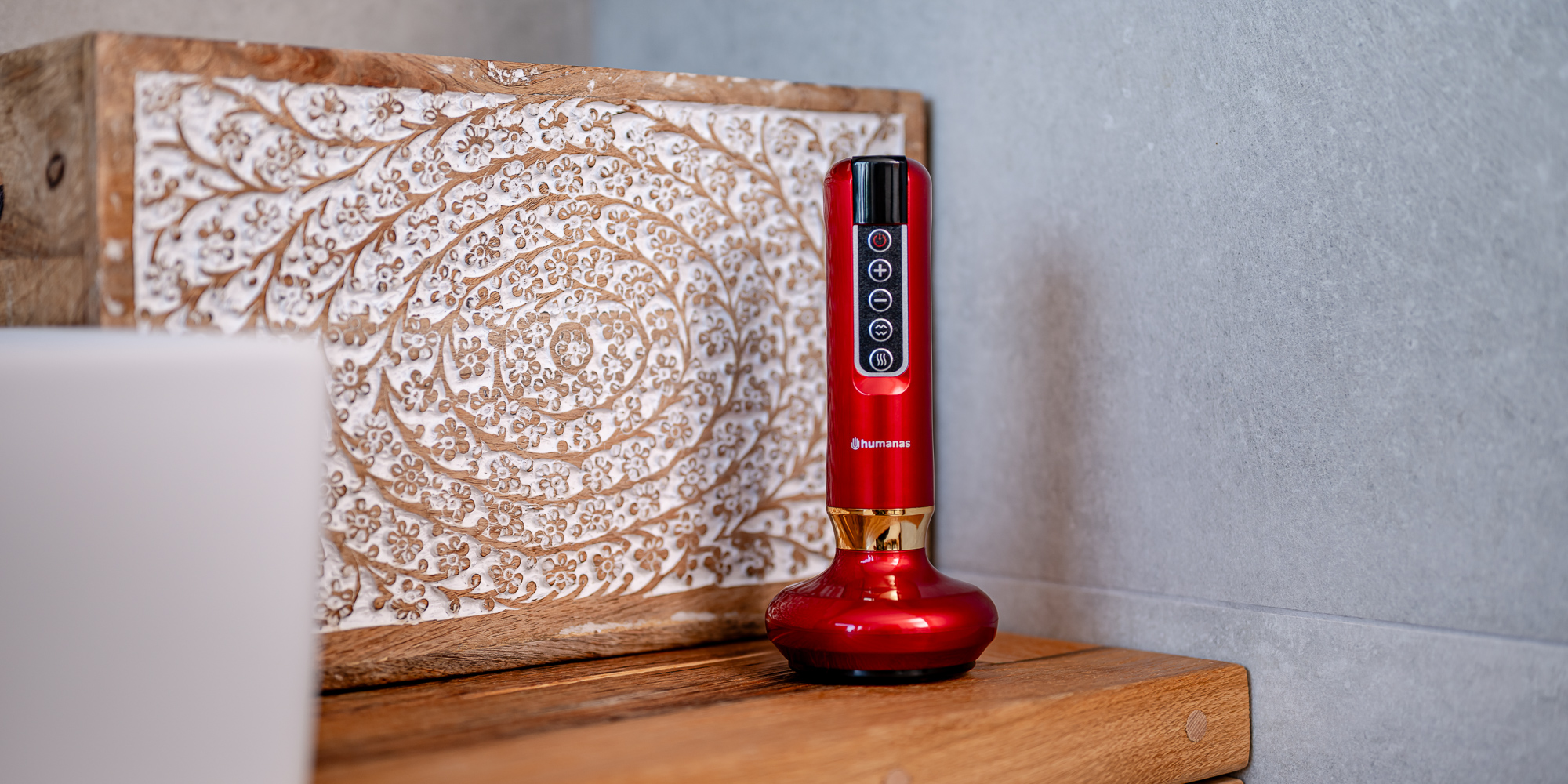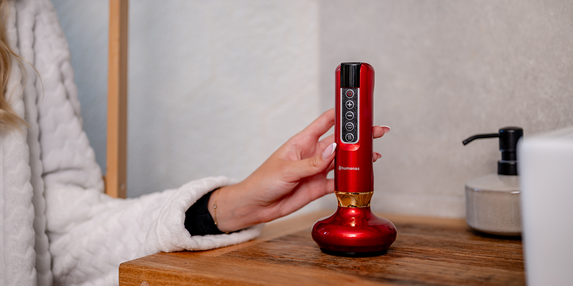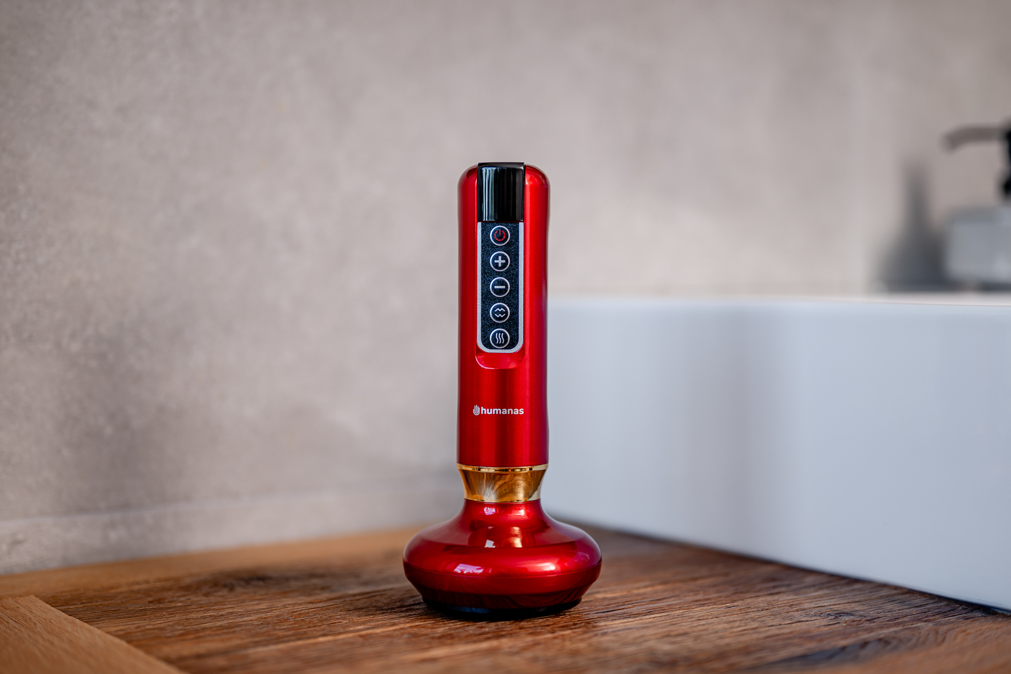 Masażer antycellulitowy z funkcją bańki chinskiej Humanas DermaSmooth - czerwony