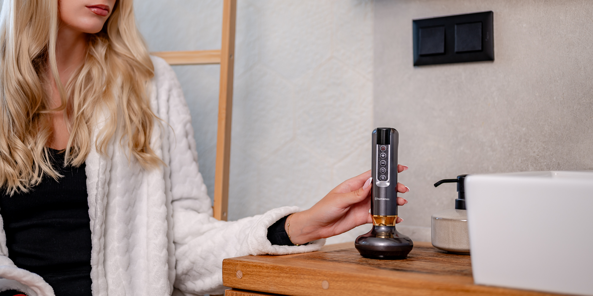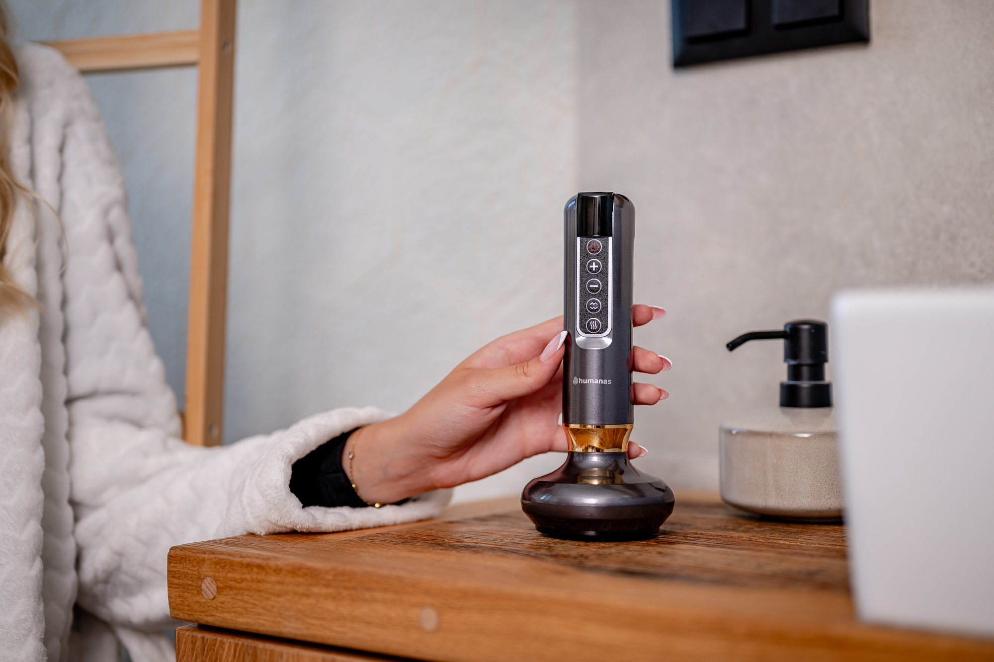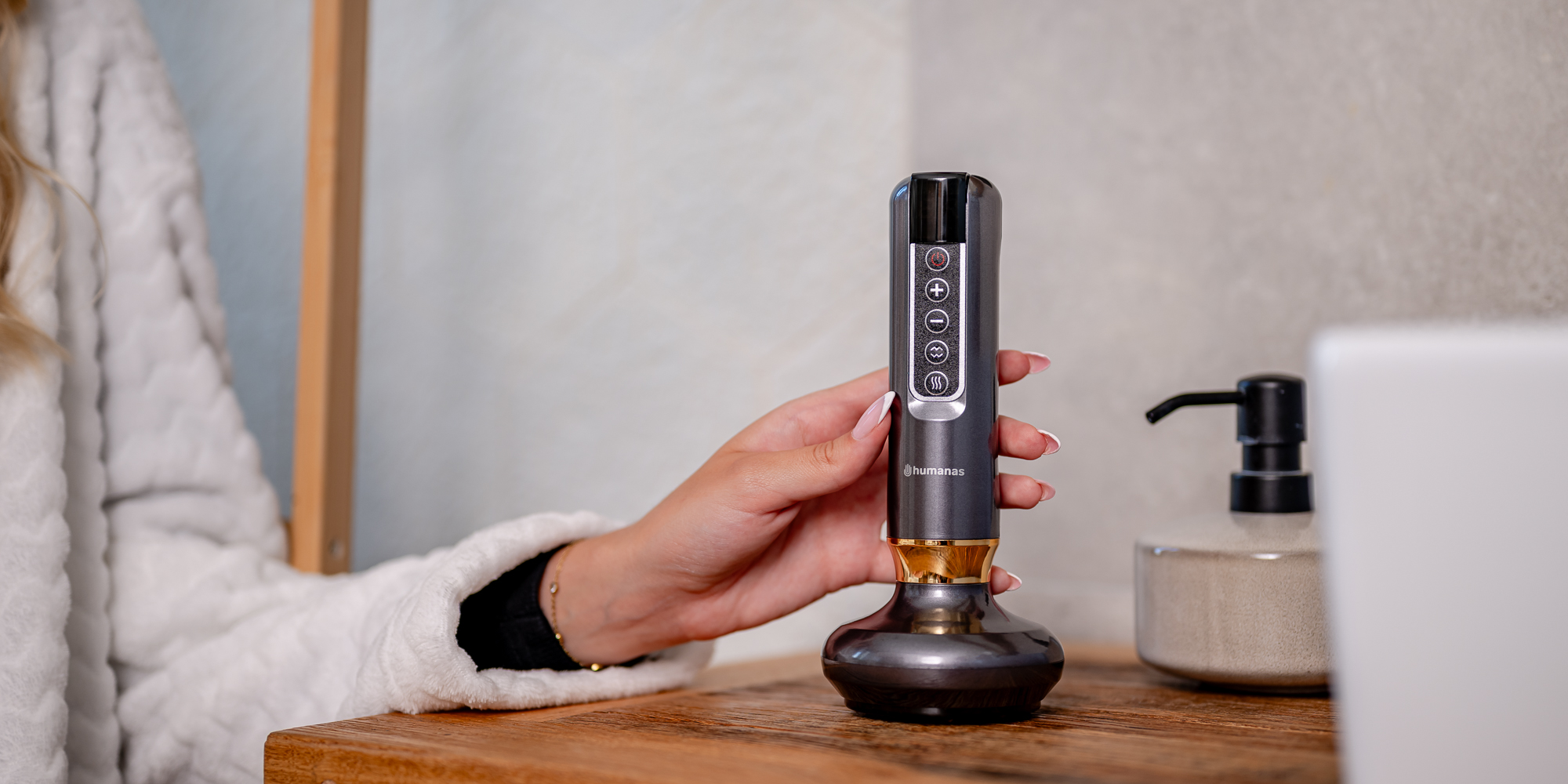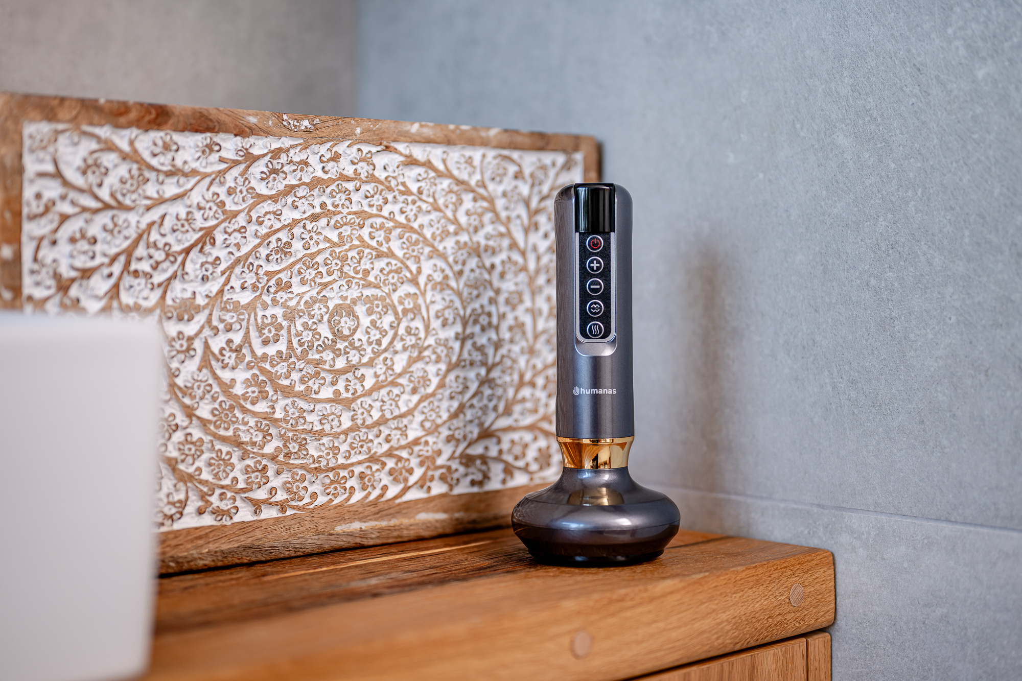Masażer antycellulitowy z funkcją bańki chinskiej Humanas DermaSmooth - szary