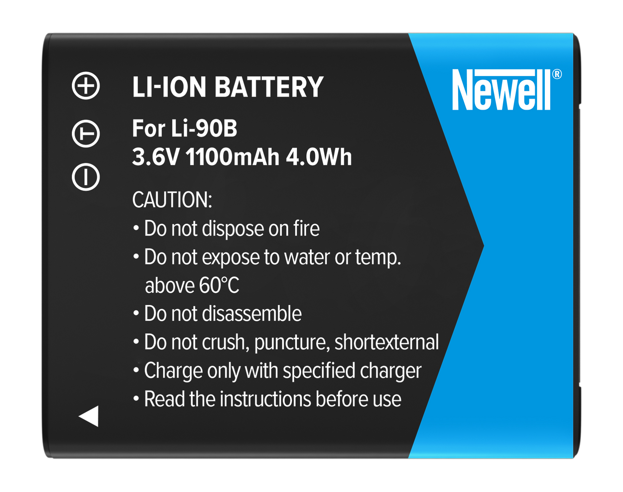 Battery replacements are Newell's flagship products. The Li-90B cell has been perfectly matched to the camera's battery compartment and compatible external chargers. Precise reproduction of the shape of the original cell guarantees the highest level of safety and trouble-free installation.