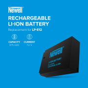 Battery replacements are Newell's flagship products. The LP-E12 cell has been perfectly matched to the camera's battery compartment and compatible external chargers. Precise reproduction of the shape of the original cell guarantees the highest level of safety and trouble-free installation.