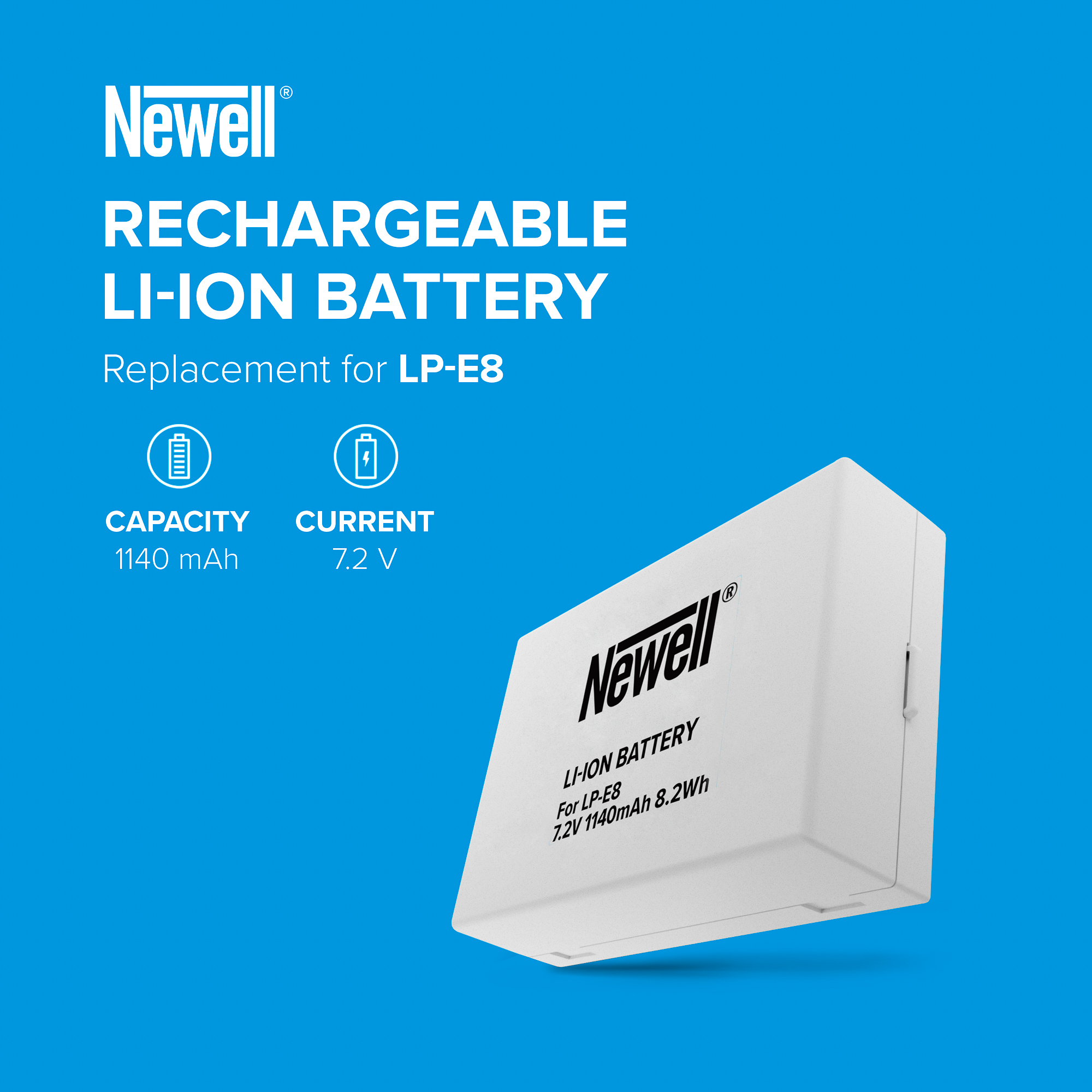 Battery replacements are Newell's flagship products. The LP-E8 cell has been perfectly matched to the camera's battery compartment and compatible external chargers. Precise reproduction of the shape of the original cell guarantees the highest level of safety and trouble-free installation.