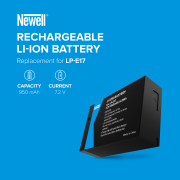 Battery replacements are Newell's flagship products. The LP-E17 cell has been perfectly matched to the camera's battery compartment and compatible external chargers. Precise reproduction of the shape of the original cell guarantees the highest level of safety and trouble-free installation.