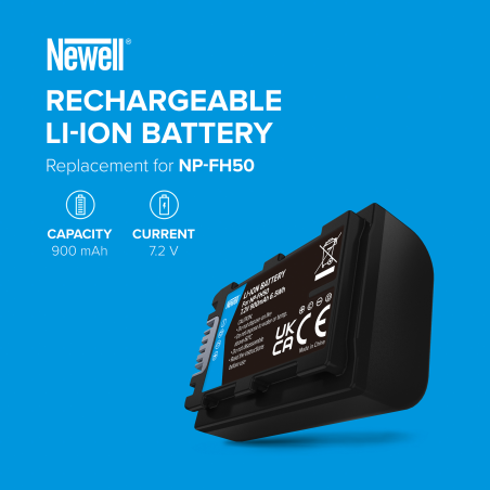 Newell replacement NP-FH50 battery is created based on lithium-ion technology. This allows you to charge and discharge it repeatedly. There is also nothing to prevent you from recharging the battery at any time. Solutions used by the Newell brand also avoid the occurrence of the so-called memory effect, i.e. the device "remembers" the reduced time of use.