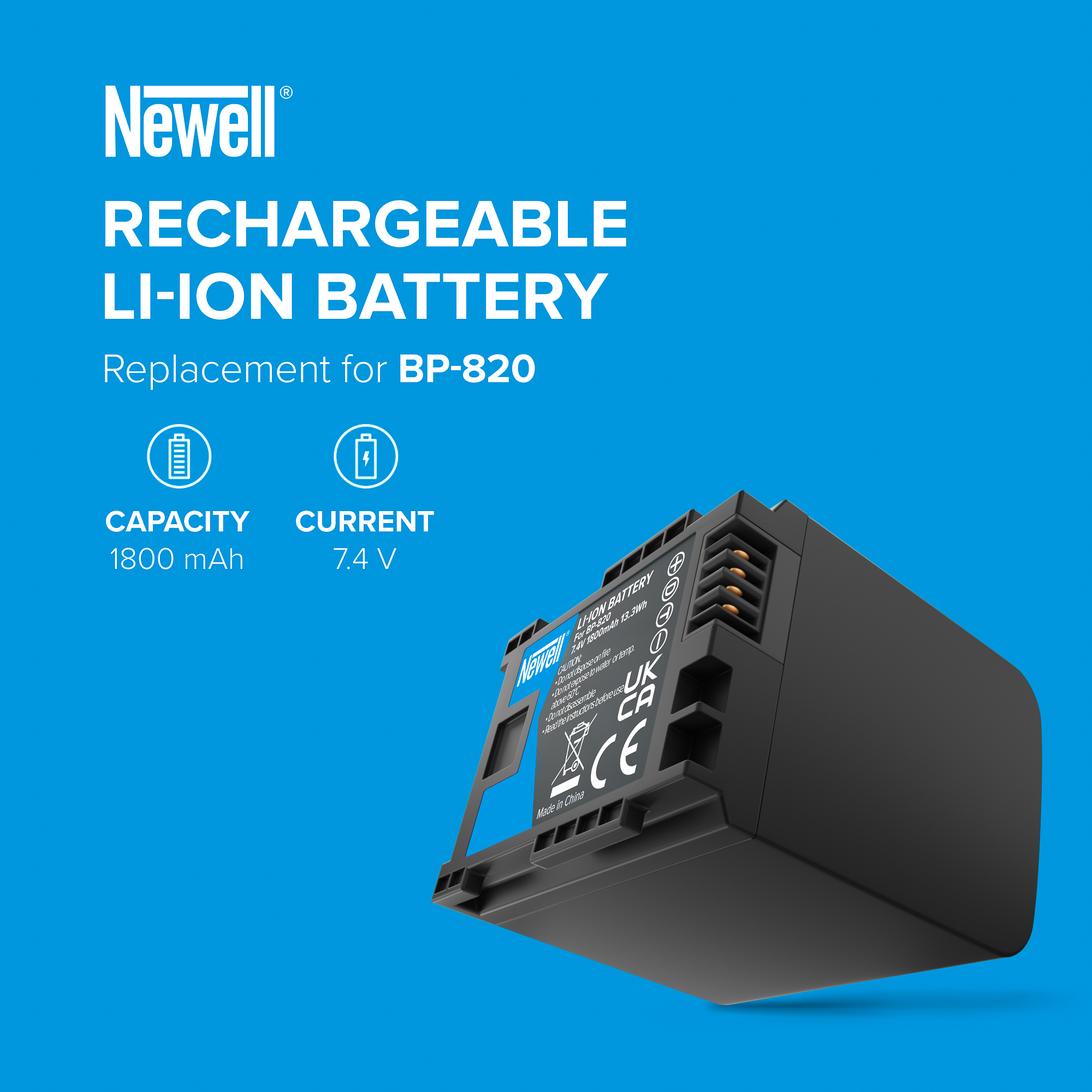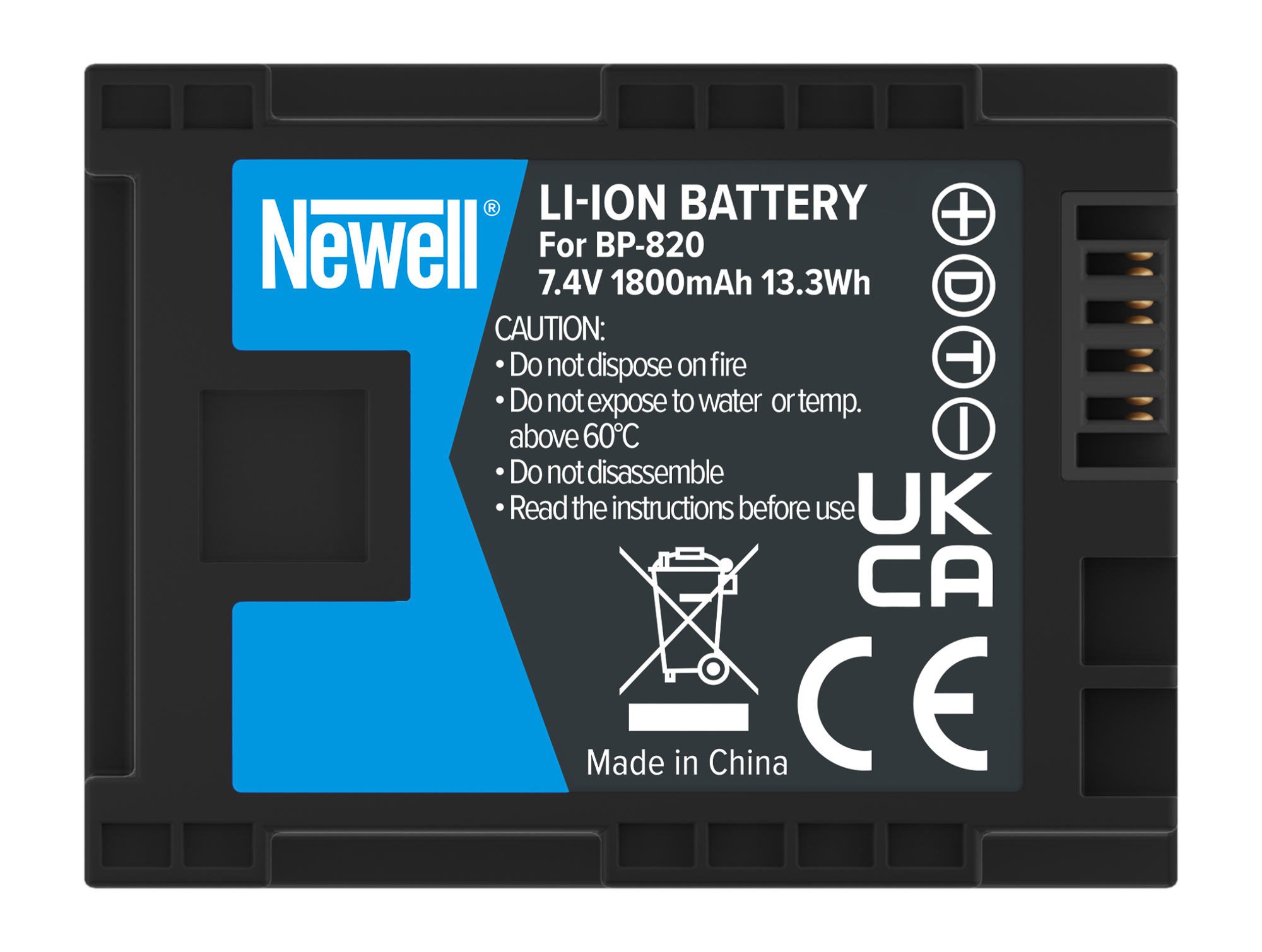 Battery replacements are Newell's flagship products. The BP-820 cell has been perfectly matched to the camera's battery compartment and compatible external chargers. Precise reproduction of the shape of the original cell guarantees the highest level of safety and trouble-free installation.
