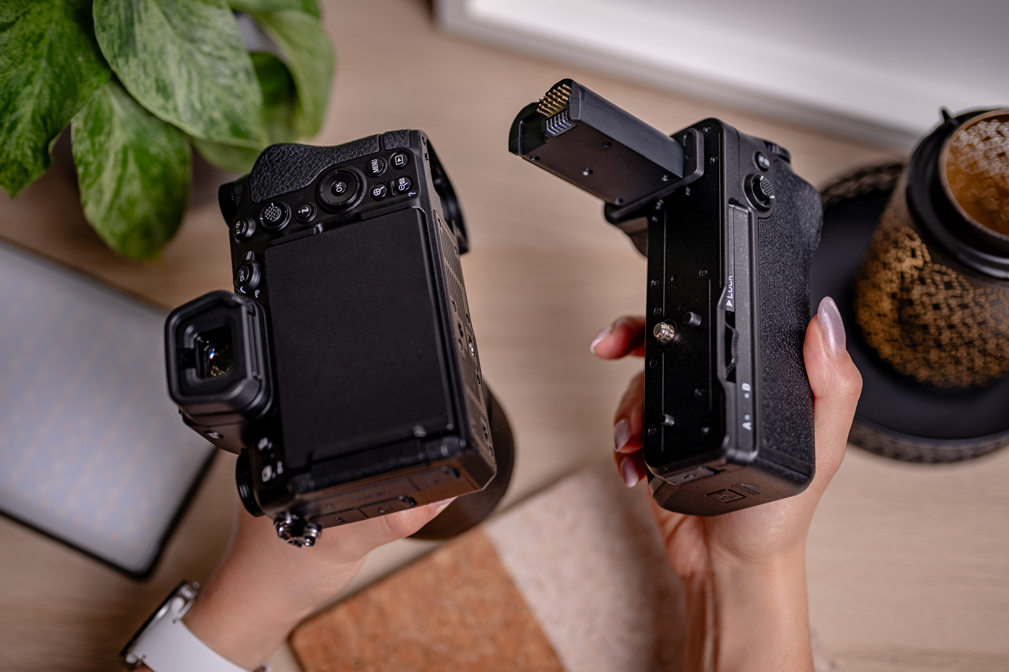 The built-in USB-C port allows you to charge both batteries without removing them from the grip. This is especially convenient when you're running late and want to get your gear ready for the next day. Just reach for the cable and leave the device overnight. The charging time for 2 cells is about 5 hours. LEDs will inform you about the charging progress. With this grip, you don't need to reach for a separate charger. It's a clever solution that saves time and space in your bag.