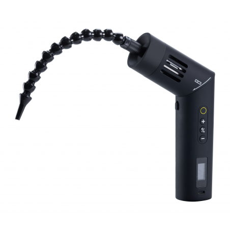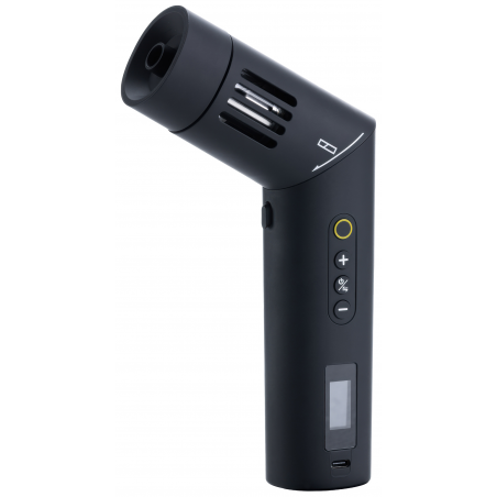 Instead of a vertical, classic body, Newell Mr Mist offers a special pivoting head that sets this smoke generator apart from competing brands. It's a detail that changes everything. With a 60-degree tilt range, you can precisely direct the smoke without awkwardly maneuvering the entire device. Do you want the aerosol not to be released upwards? Just change the angle of the head!