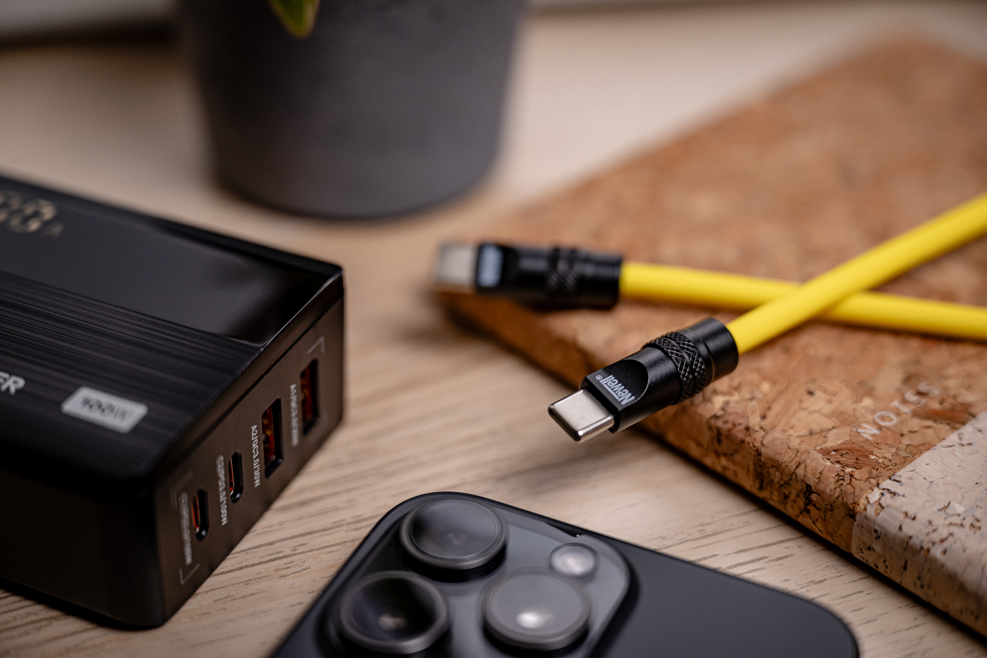 You know that feeling when you take out five identical cables from your backpack and don't know which one is from what? Newell offers a simple yet ingenious solution: the USB-C - USB-C 100 W cable is available not only in black and gray variants, but also in a number of distinctive colors - yellow-black, blue-orange and red-blue. Just one glance and you already know which cord is yours. Aesthetics are one thing, but in this case it's all about convenience and the ultimate taming of the chaos reigning in your technological essentials!