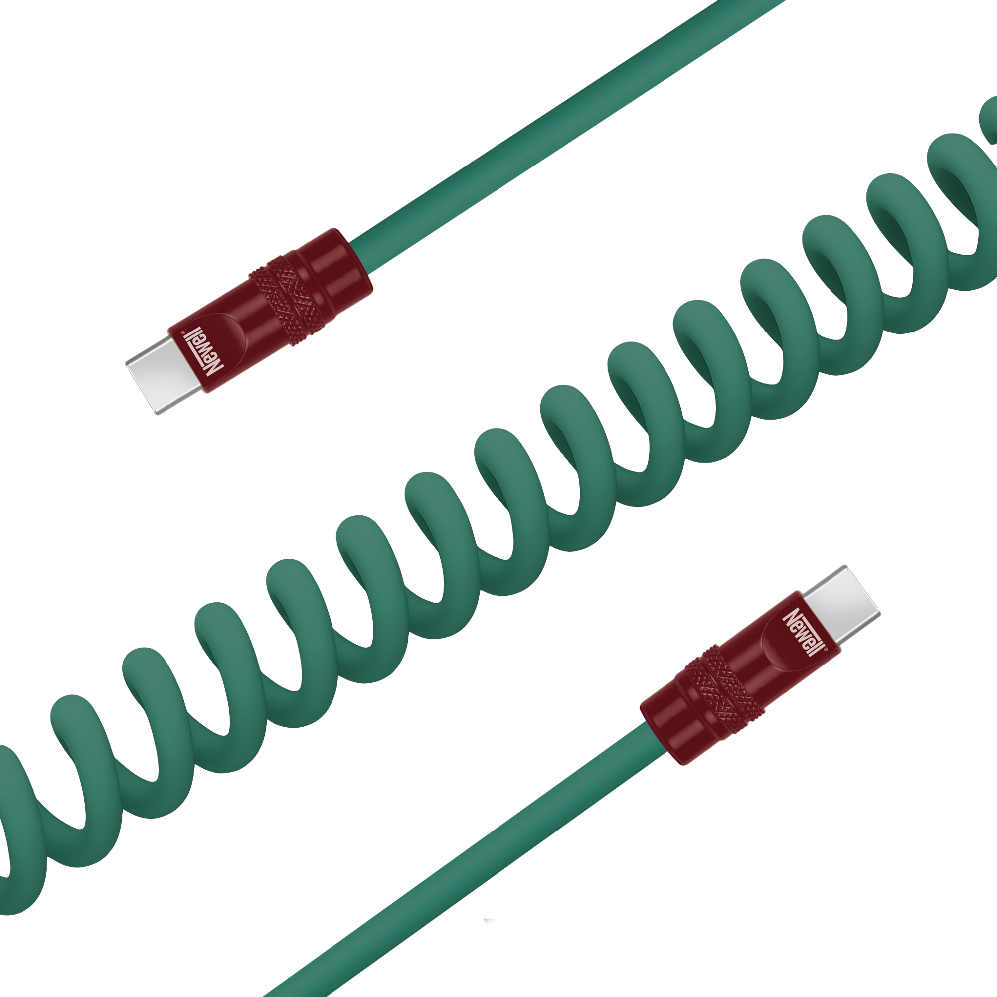- model: Newell USB-C to USB-C cable, 100 W, 1.5 m, silicone, spiral, green and burgundy