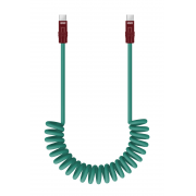 - spiral silicone USB-C to USB-C cable for charging devices with up to 100 watts of power