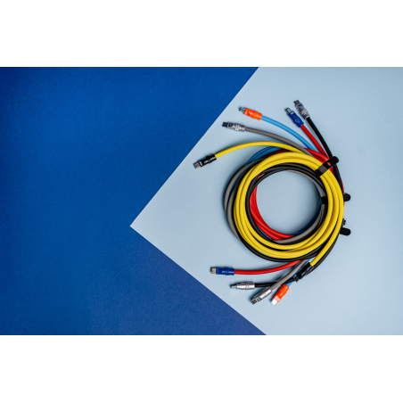 Once you touch this cable, you will never want to go back to ordinary cables made of cheap plastic. However, the silicone coating is not only pleasant to the touch. The material also guarantees high flexibility and resistance to tangling. The cable does not break, does not stiffen in low temperatures, and does not "take on a life of its own" when rolled up. Its 5.4 mm thickness guarantees above-average durability. It can be rolled up, crumpled in a bag, or dragged across a desk many times without fear of breakage or abrasion. The set also includes a silicone band to secure the cable when rolled up.