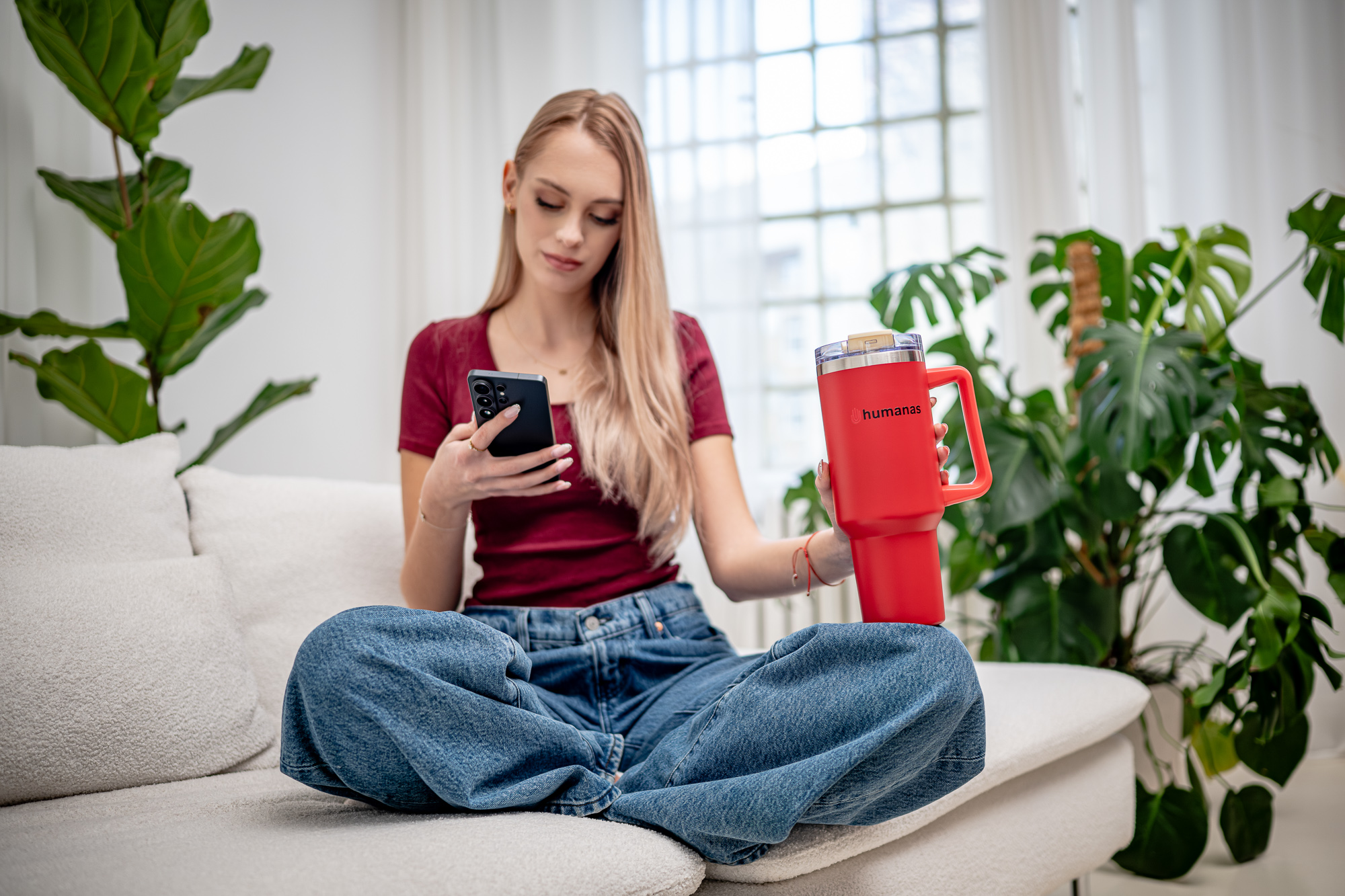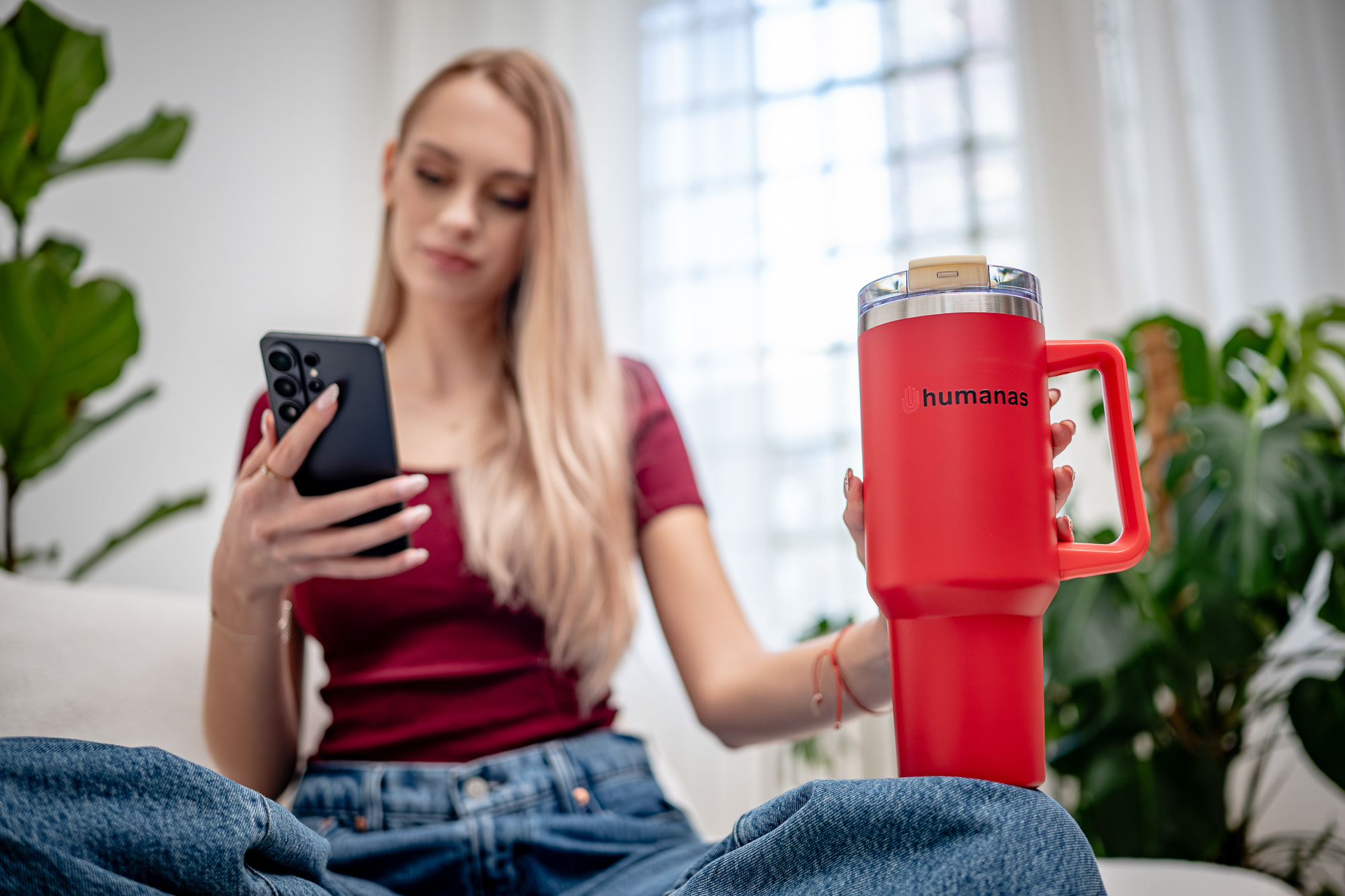 Kubek termiczny Humanas Viva 1200 ml - czerwony