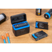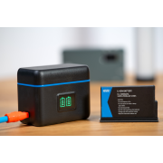 The Newell STD-USB dual-channel chargeris the perfect solution for Insta360 X5 camera owners who need a mobile and safe way to charge their batteries. It allows you to recharge two batteries simultaneously. You can fully charge 2250 mAh batteries in about 2 hours. The compact, lockable case also serves as a pouch that can hold two microSD cards in addition to the batteries. Integrated LED indicators on the front of the charger show the charge level of each battery in easy-to-read 25% increments. The security system protects against overload, short circuit, overheating, and overcharging. A compatible USB-C to USB-A cable is included. The product is covered by a 40-month manufacturer's support program.