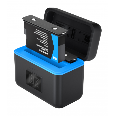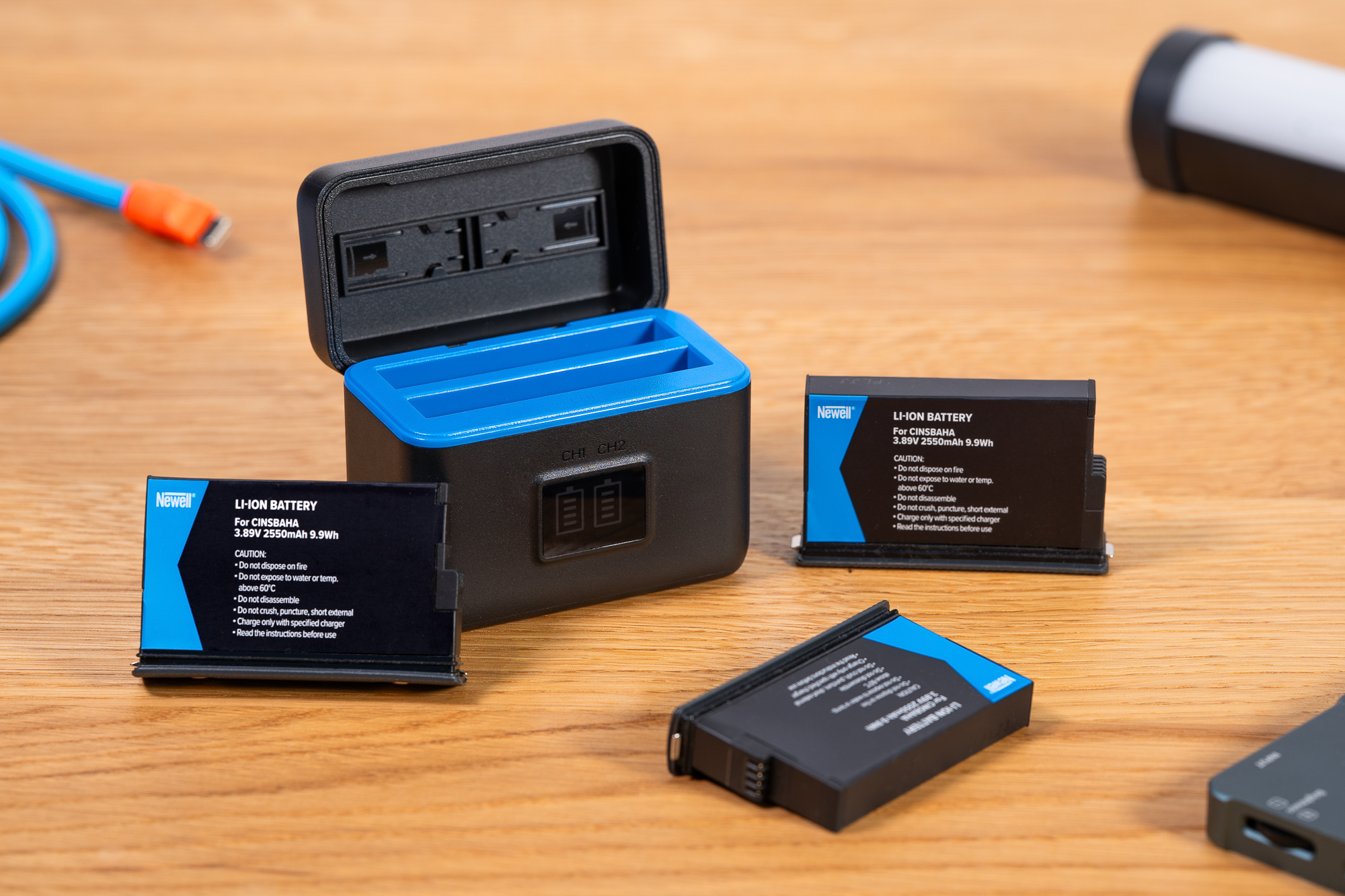 With its compact size and light weight, the Newell STD-USB charger for CINSBAHA batteries fits easily into a backpack, camera bag, or jacket pocket. You can take it with you literally anywhere. Thanks to the carrying case function, you don't need additional containers for batteries and memory cards. You have everything in one well-organized place, ready for immediate use whenever you need to replace the battery in your Insta360 X5 sports camera.