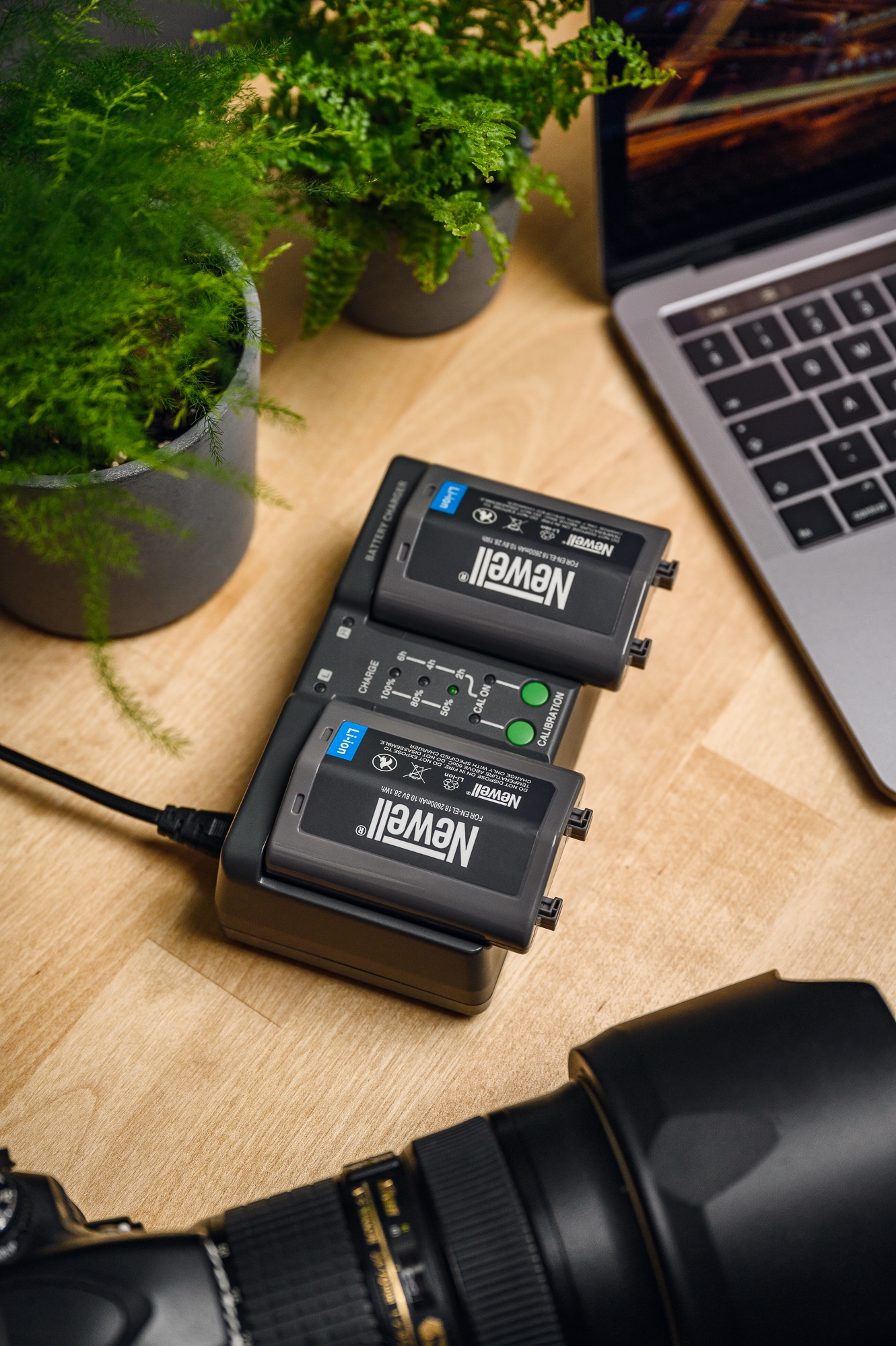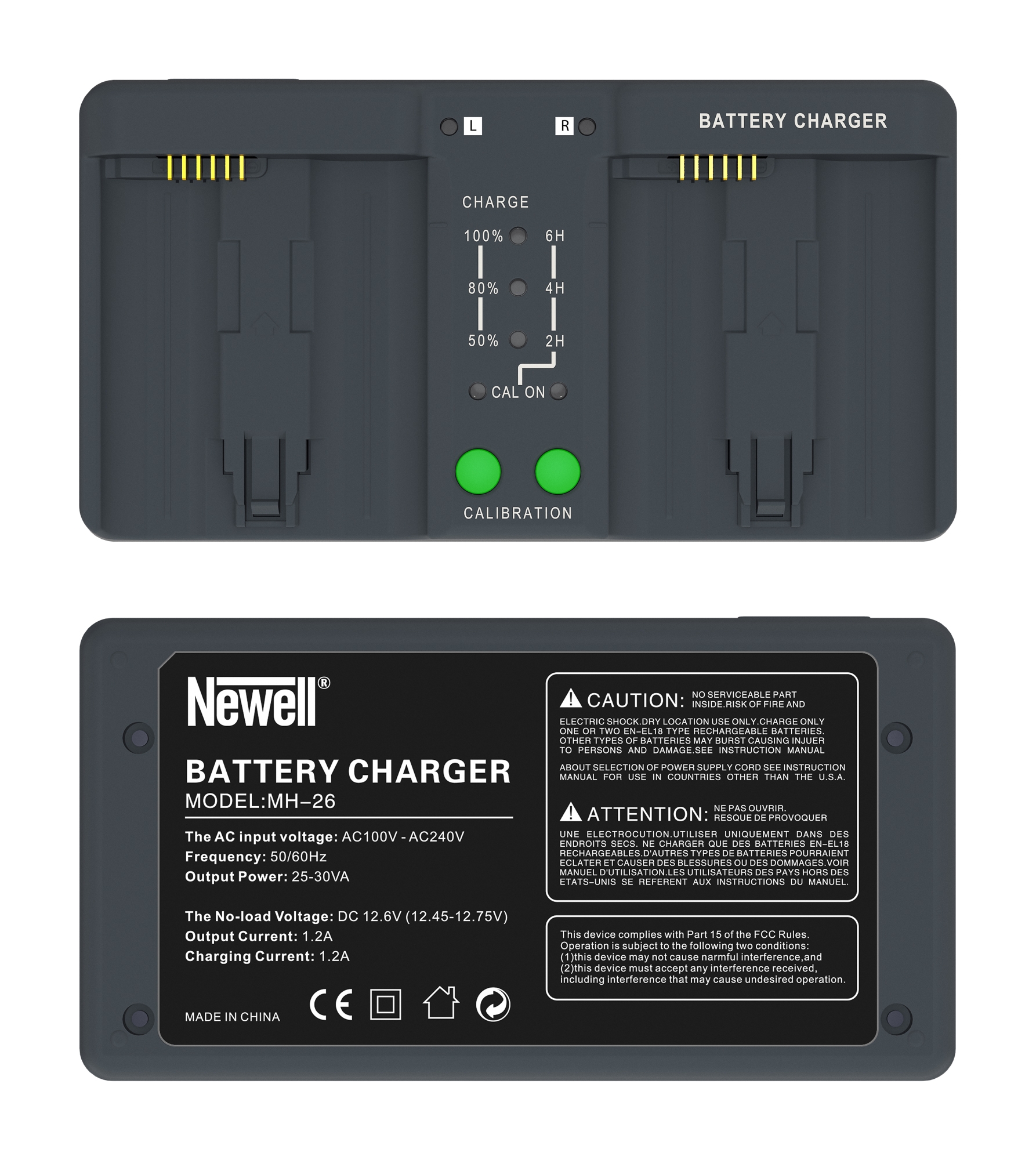 On the case of the Newell BC-18B dual channel charger, you will find clear LED indicators that will let you know the level of charge of your batteries using a 3-stage scale: 50%, 80% and 100% The LEDs will also come in handy during the calibration process Thanks to the indicators you will know how much time you need to carry out this process to the end