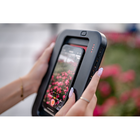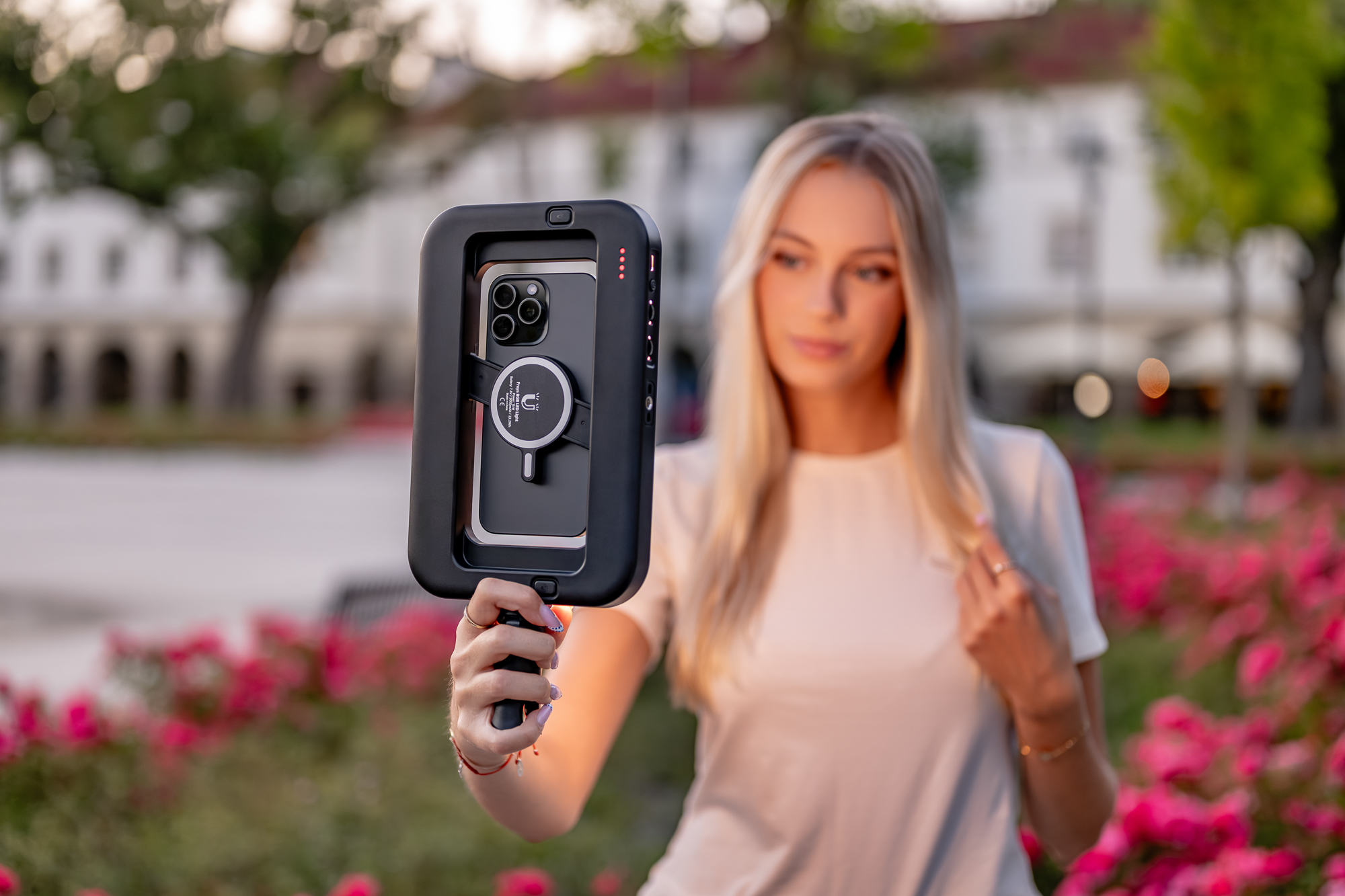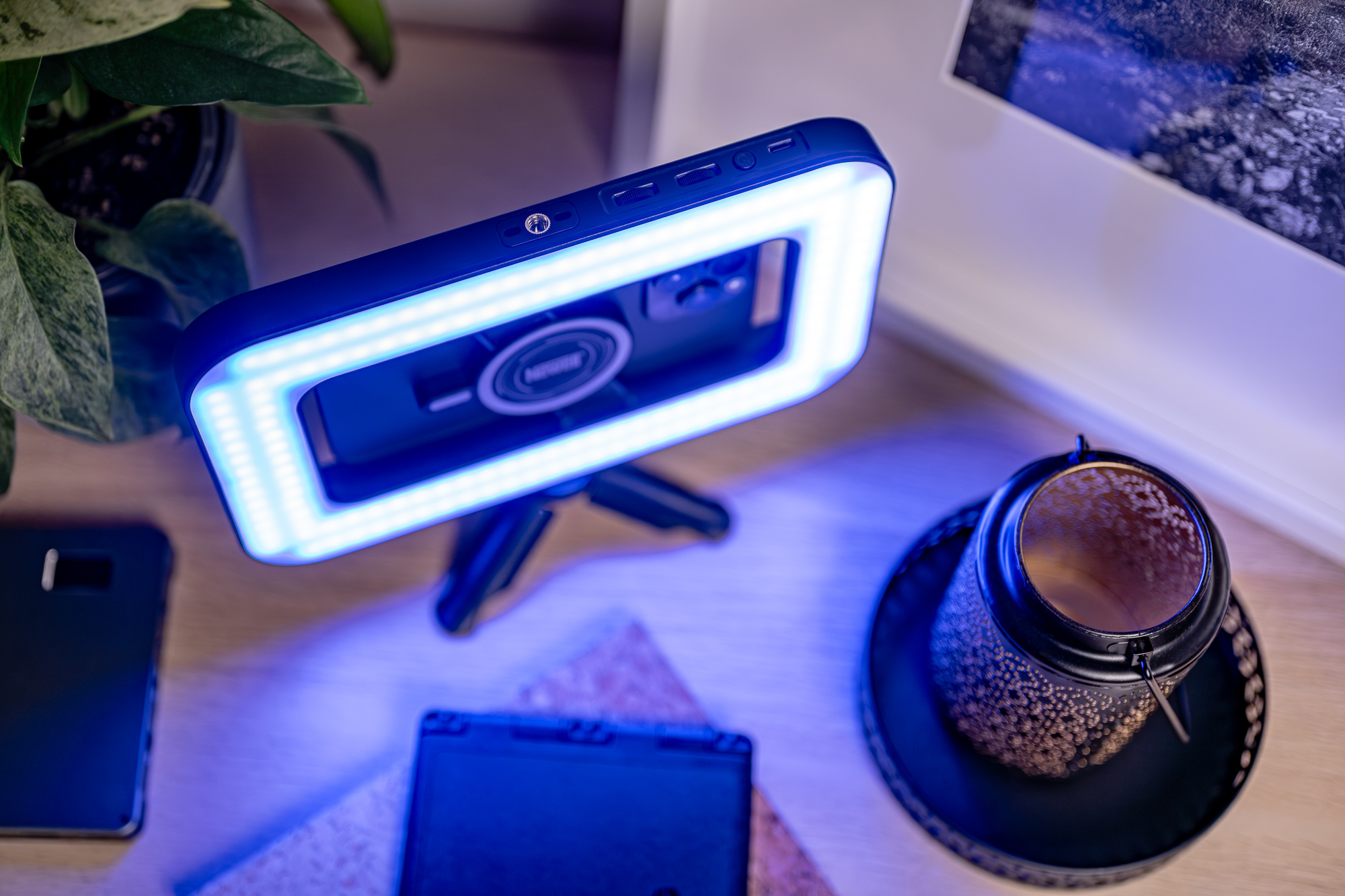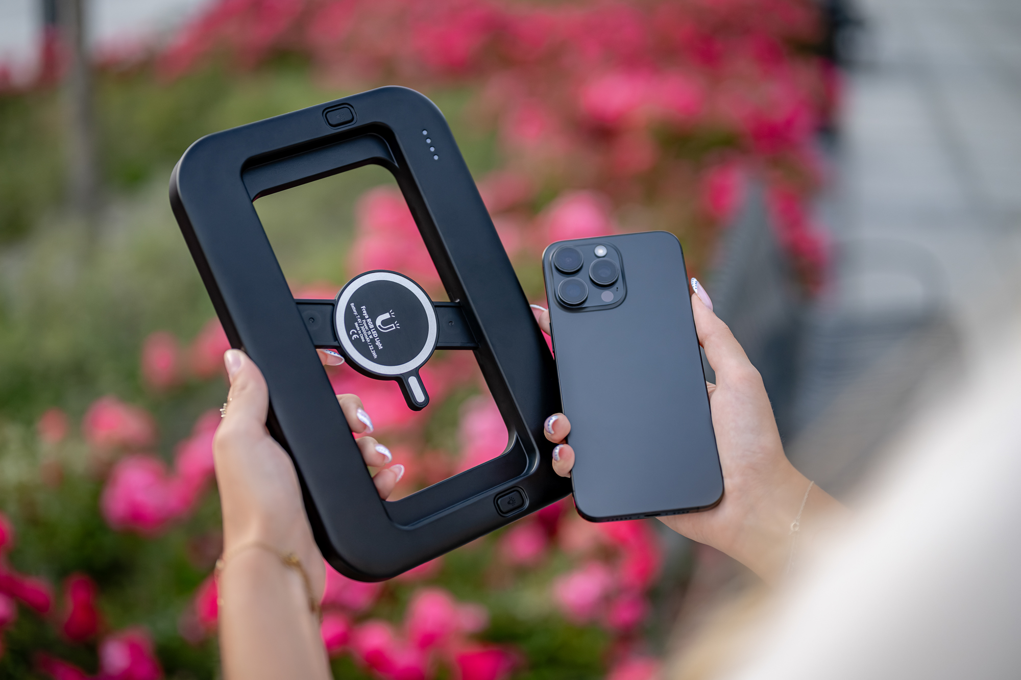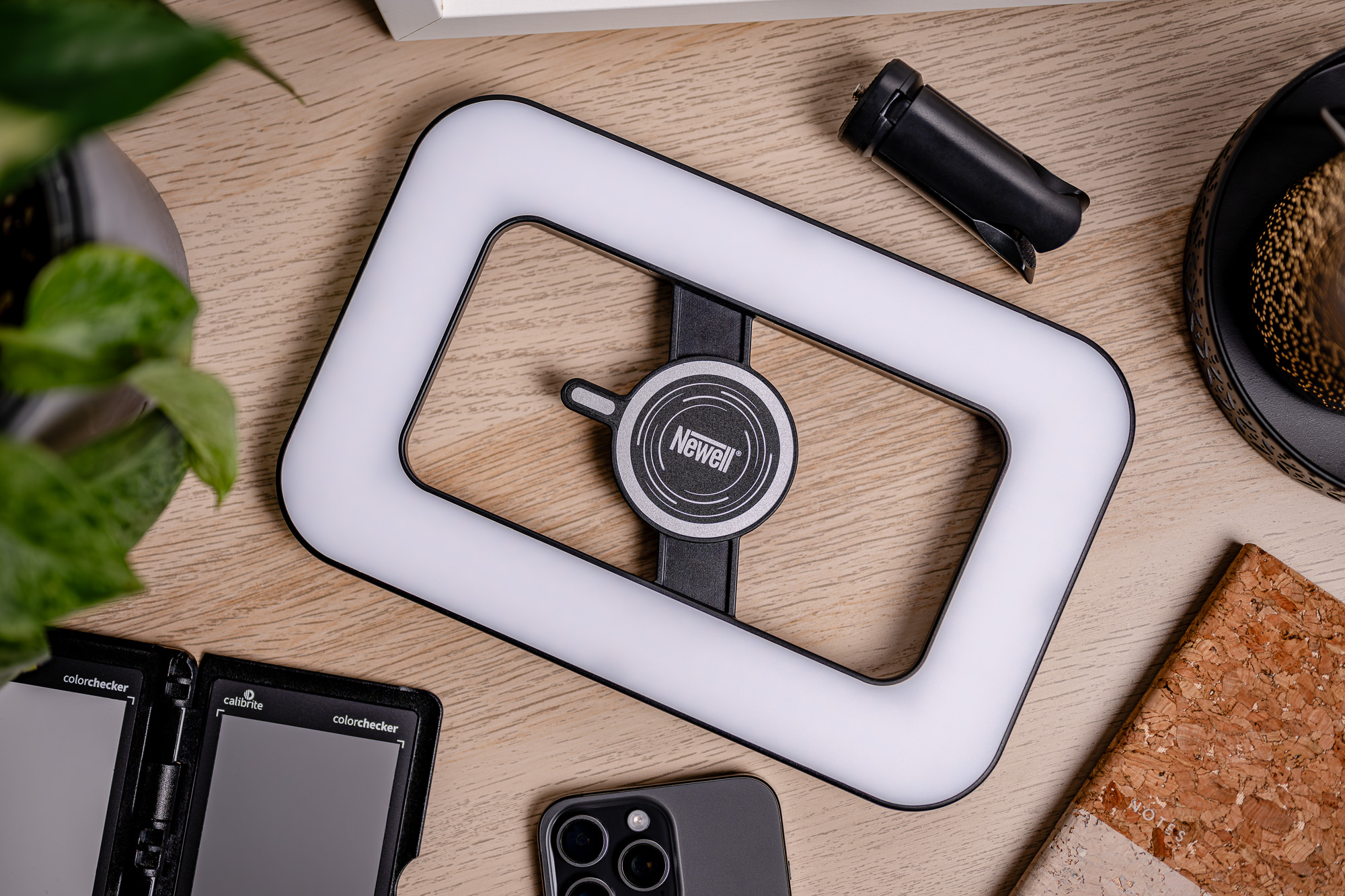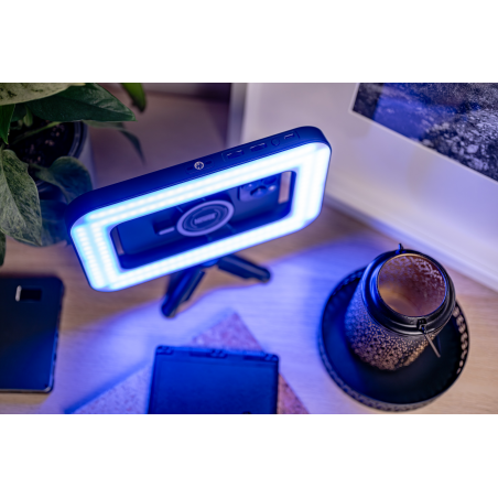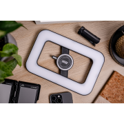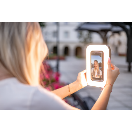 The Newell Freya LED light is designed for iPhone users supported by MagSafe technology. The powerful magnet provides instant and stable attachment of the phone in the center of the device. This ensures that the smartphone you are filming or taking photos with is always in the perfect position. You gain not only perfect illumination of the frame, but also comfortable handling and a secure grip. It's ideal for vlogs, selfies, live shows and anywhere else where responsiveness and above-average mobility are important.