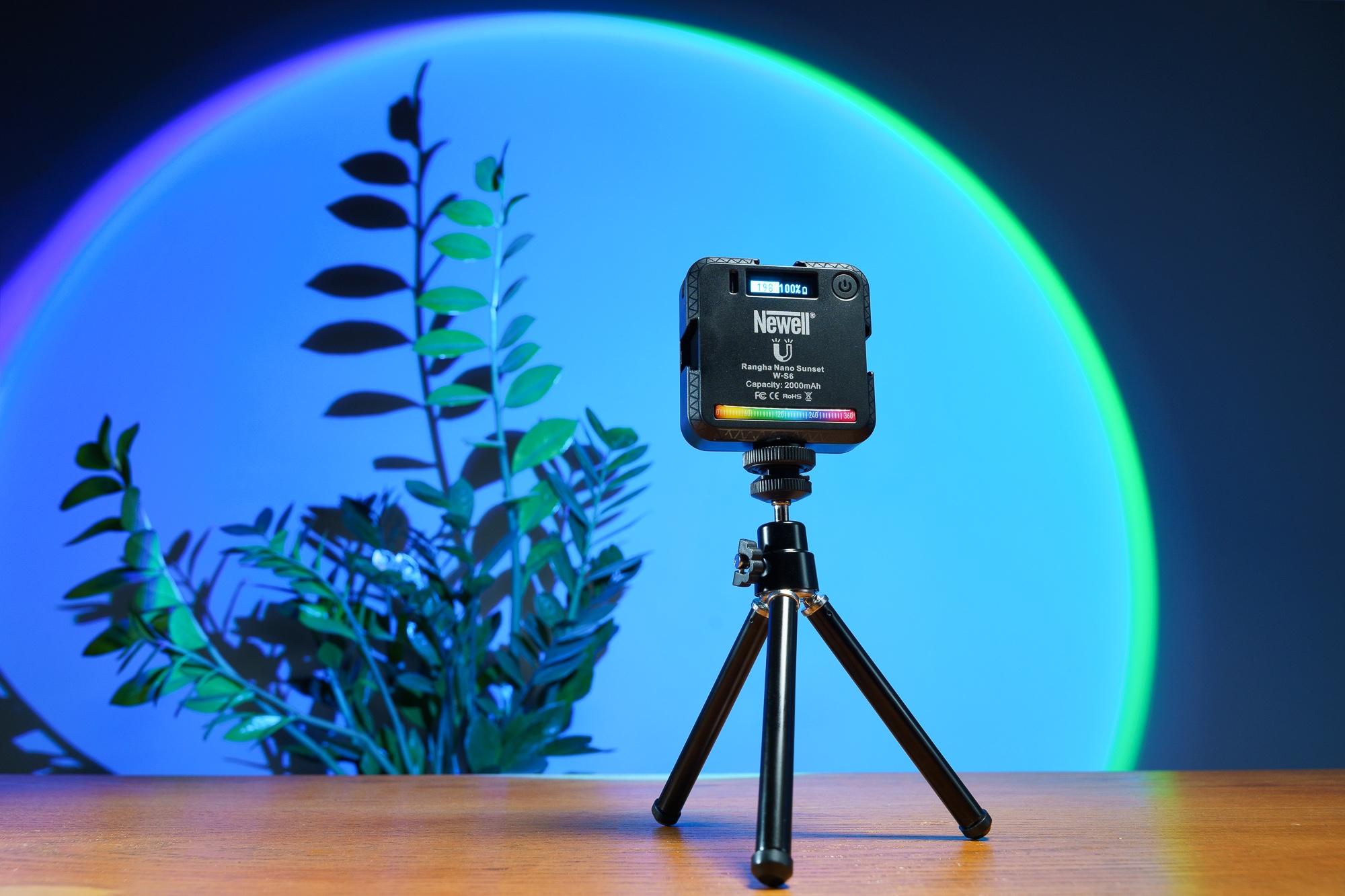 In the set with the lamp Newell RGB-W Rangha Nano Sunset you will find a small tripod with a ball head, which will allow you to work comfortably with the device, without having to buy additional accessories. The manufacturer has also thought about the video creators, vloggers, tiktokers and people engaged in conducting webinars and online broadcasting. A special mounting bracket will allow you to install the lamp directly on your laptop or smartphone, exactly in the place where the camera lens is located. This will provide ideal lighting conditions and improve the quality of your home productions!
