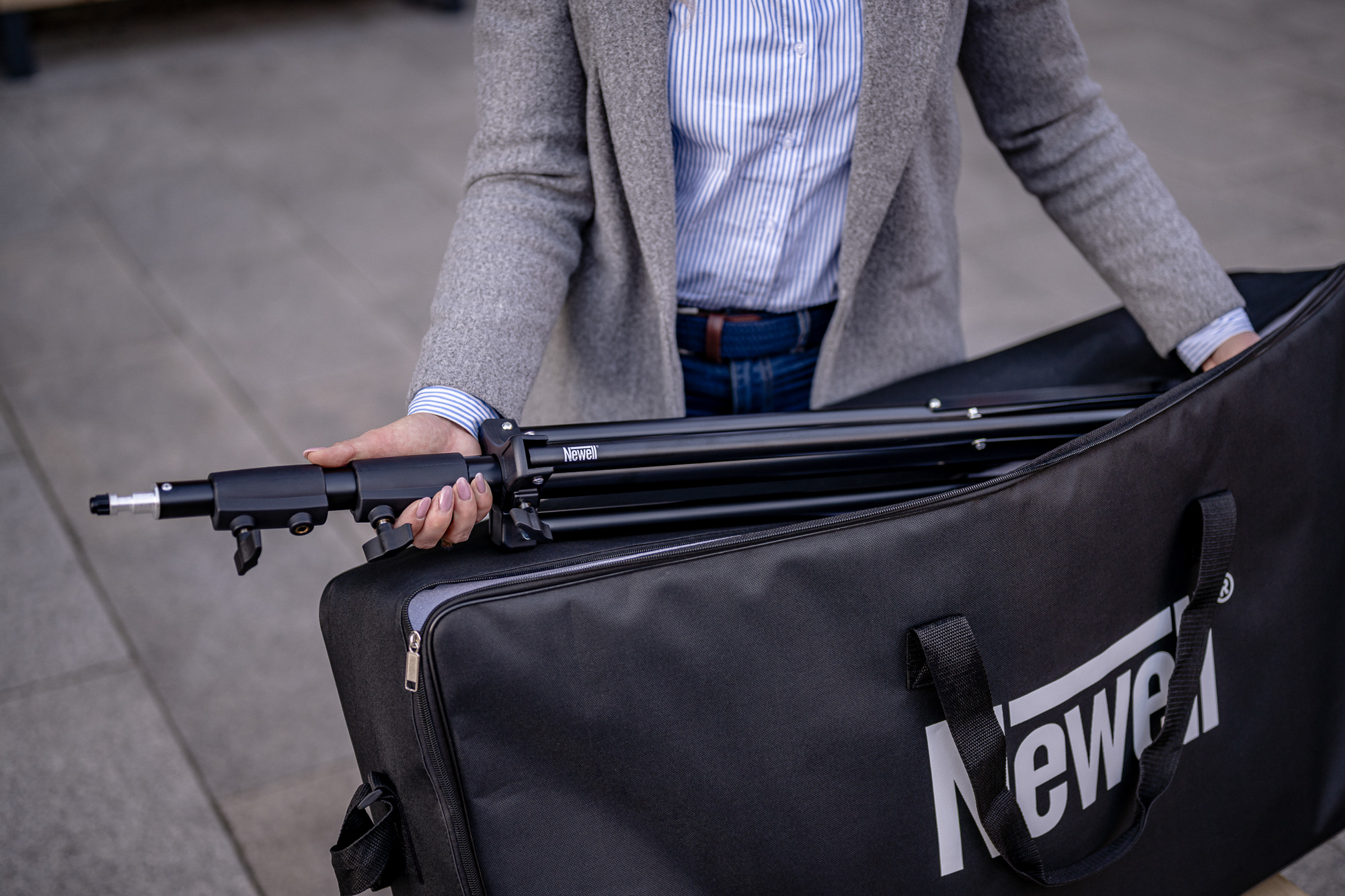 Rounding out the set is the Newell Talos tripod - a sturdy aluminum structure with an impressive maximum height of 280 cm and a lifting capacity of up to 6 kg. Thanks to its wide leg spacing and lockable sections, you gain confidence that your light will stay exactly where you set it - without wobble or stress. Whether you're working with a lightweight LED panel or a heavier setup with rechargeable batteries, Talos guarantees complete stability.