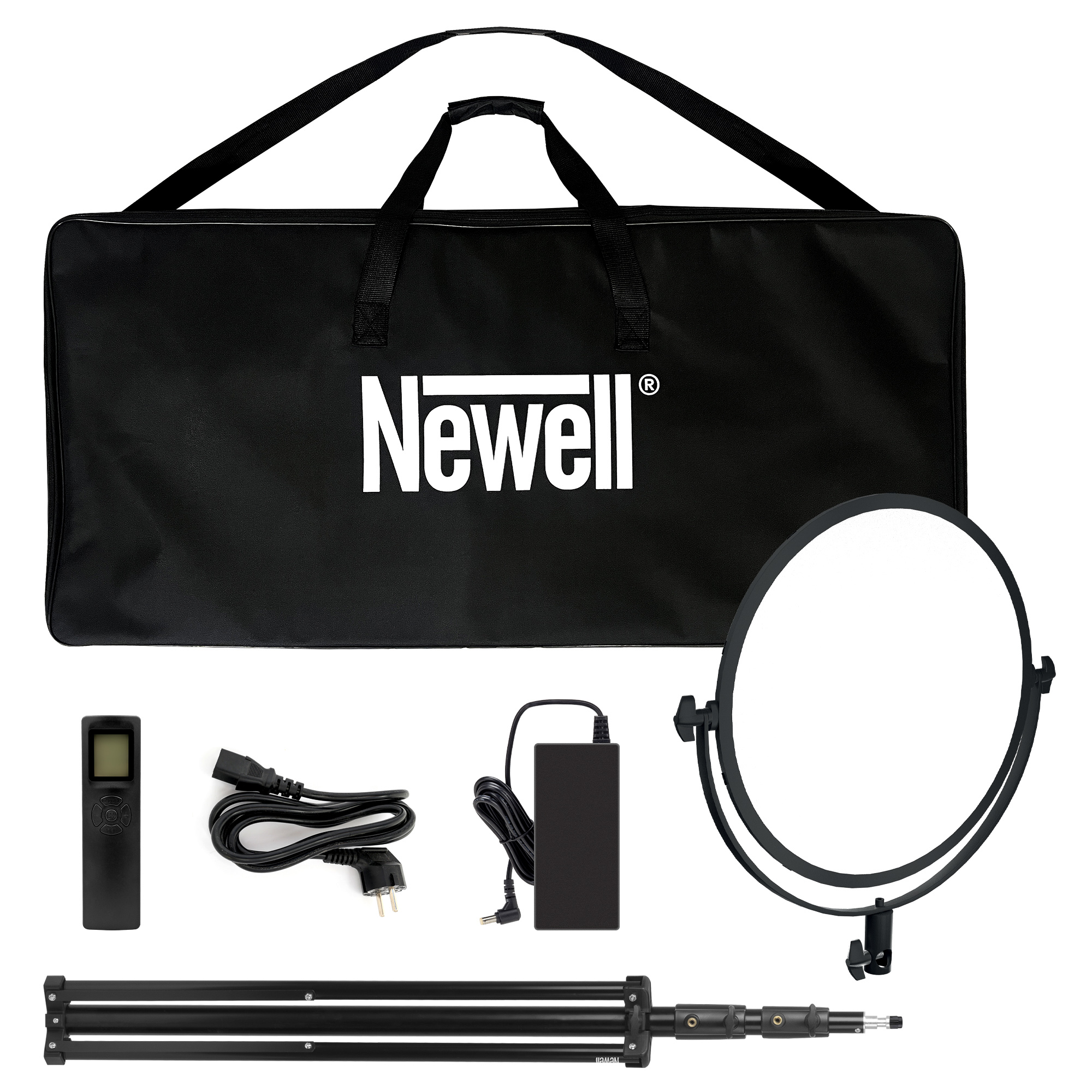 The Newell Air Artha and Talos kit is a complete solution for creatives looking for mobile, versatile and professional lighting. The large LED panel (Ø30 cm) with built-in diffuser provides soft light and natural colors (CRI >95), ideal for photo, video, broadcast and beauty work. Adjustable color temperature (3200 - 5600 K), remote control by remote control and mobile app, and two power options (mains and rechargeable) guarantee full control in all conditions. A 280 cm high aluminum tripod and a carrying bag perfectly complement the lamp, together creating a practical set, ready for action anytime, anywhere.