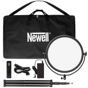 The Newell Air Artha XL and Talos kit is a complete solution for creatives looking for mobile, versatile and professional lighting. The large LED panel (Ø41 cm) with built-in diffuser provides soft light and natural colors (CRI >95), ideal for photo, video, broadcast and beauty work. Adjustable color temperature (3200 - 5600 K), remote control by remote control and mobile app, and two power options (mains and rechargeable) guarantee full control in all conditions. A 280 cm high aluminum tripod and a carrying bag perfectly complement the lamp, together creating a practical set, ready for action anytime, anywhere.