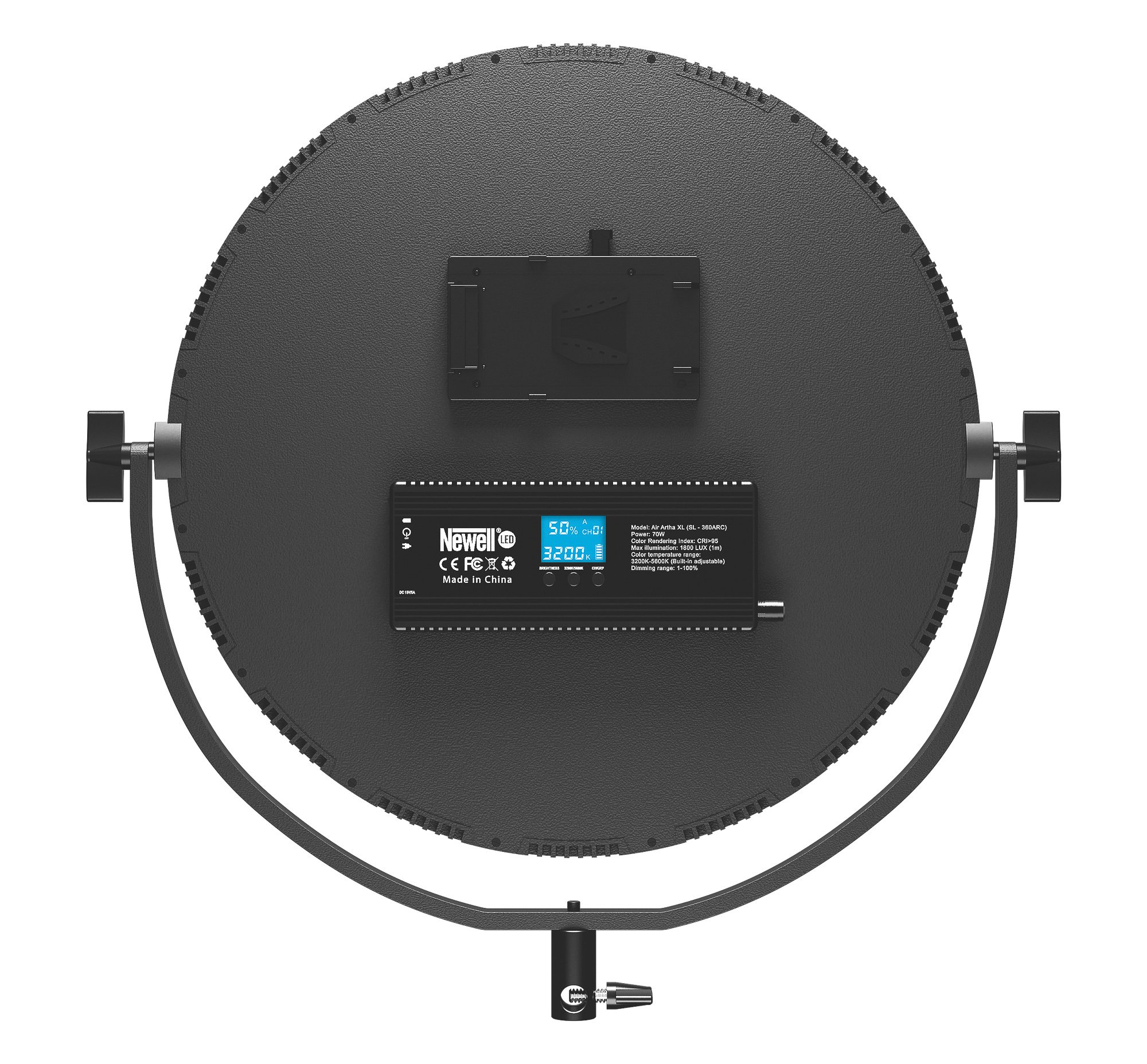The Newell Air Artha XL lamp adapts to your mode of operation, offering two independent power options. When you're in the studio, you'll use the included DC 15-volt AC adapter to ensure uninterrupted operation for hours. When you're out in the field, simply reach for the popular V-Mount series batteries (available for separate purchase) to become independent of outlets and enjoy full mobility. The built-in display will let you know the level of charge of the cells, so you always know when to replace or recharge them.