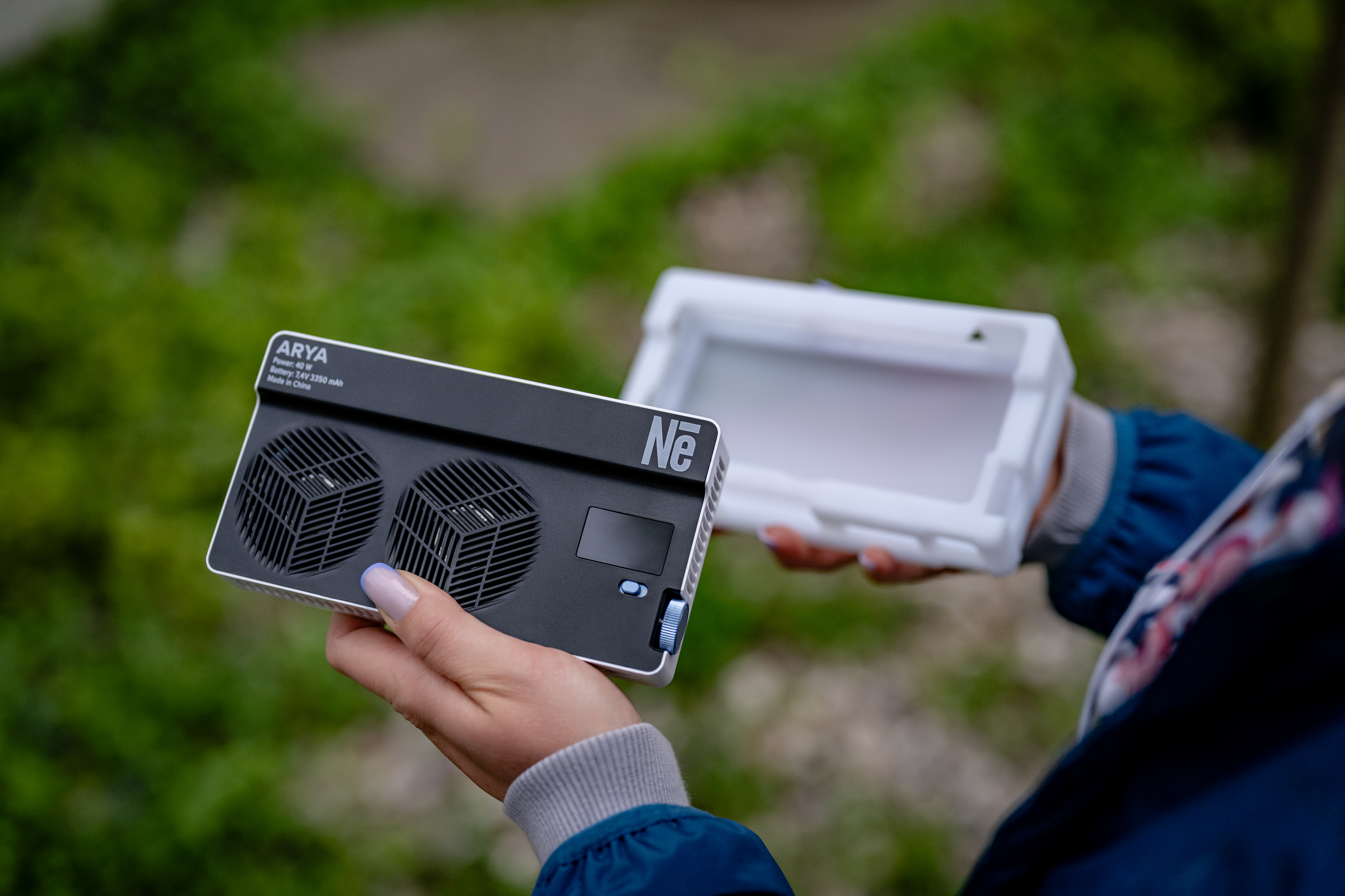Newell Arya RGB 40 W is the perfect choice for video creators, photographers, vloggers, streamers, tiktokers, influencers and beauty professionals. It will be great for makeup shoots, portrait sessions, hair styling or live broadcasts, where perfect, soft light and accurate color reproduction are important. The compact design and integrated rechargeable battery make Arya an indispensable tool also for creatives working outdoors and in dynamic studio conditions. Its wide range of color temperature adjustments, HSV mode and up to 24 FX effects offer tremendous creative possibilities - from natural beauty shots to stylized photo shoots, product photography and creative video scenes. This is a light that will adapt to your vision wherever you come to work with it!