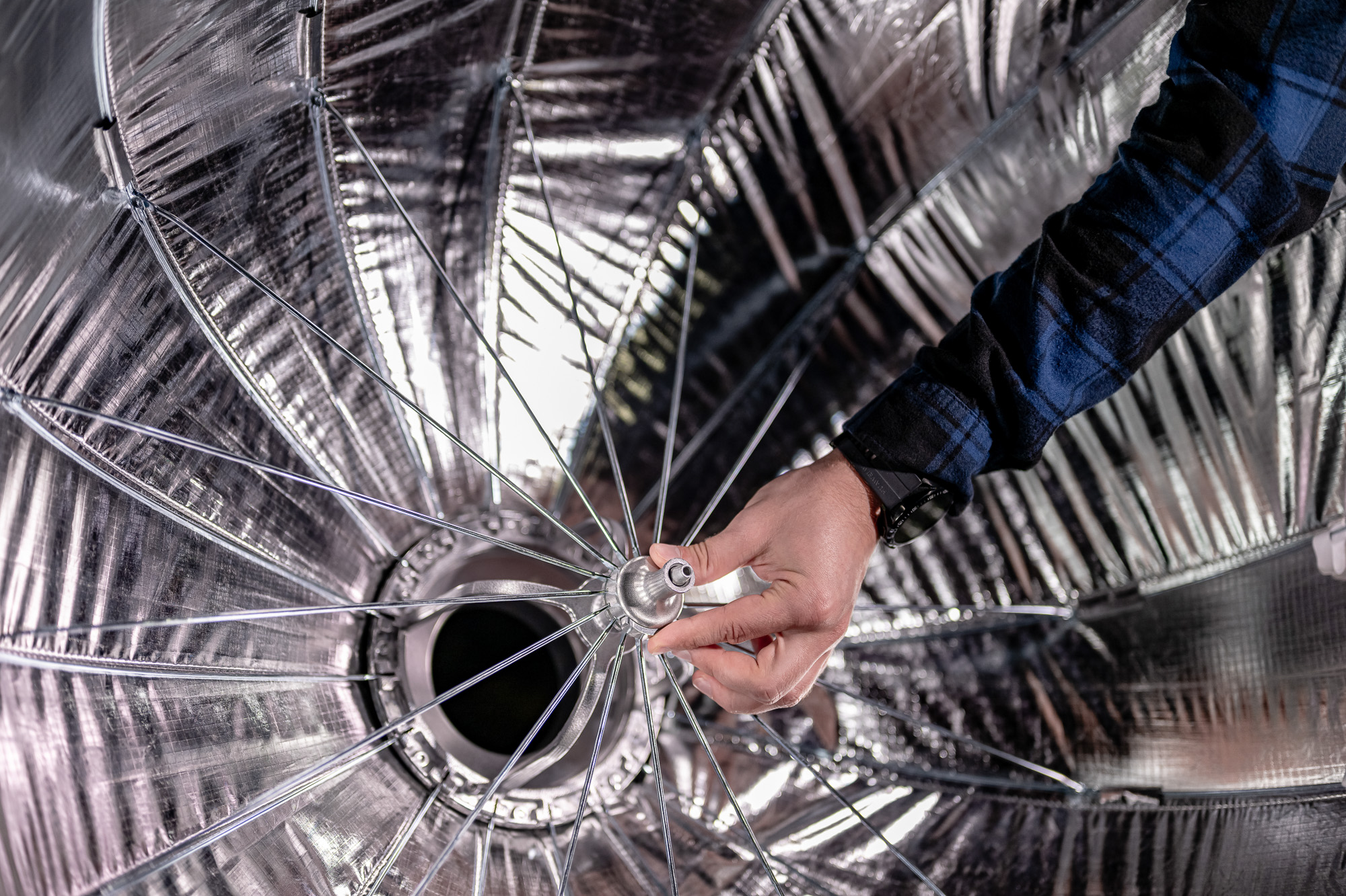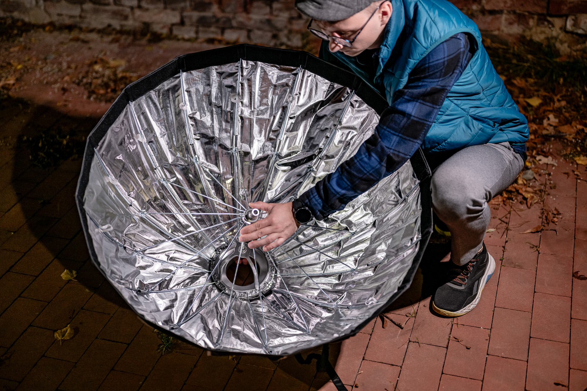 The Newell 85 cm parabolic softbox is equipped with a state-of-the-art quick assembly system, which allows you to fold and unfold the modifier in no time. Thanks to the refined mechanism, tensioning the rods is trivial, and they lock automatically. When the session is over, all you have to do is press one button to release the latches and fold the softbox. The whole folding and unfolding mechanism resembles the one used in umbrellas. With this modifier you can work effortlessly in dynamic conditions, saving precious time.