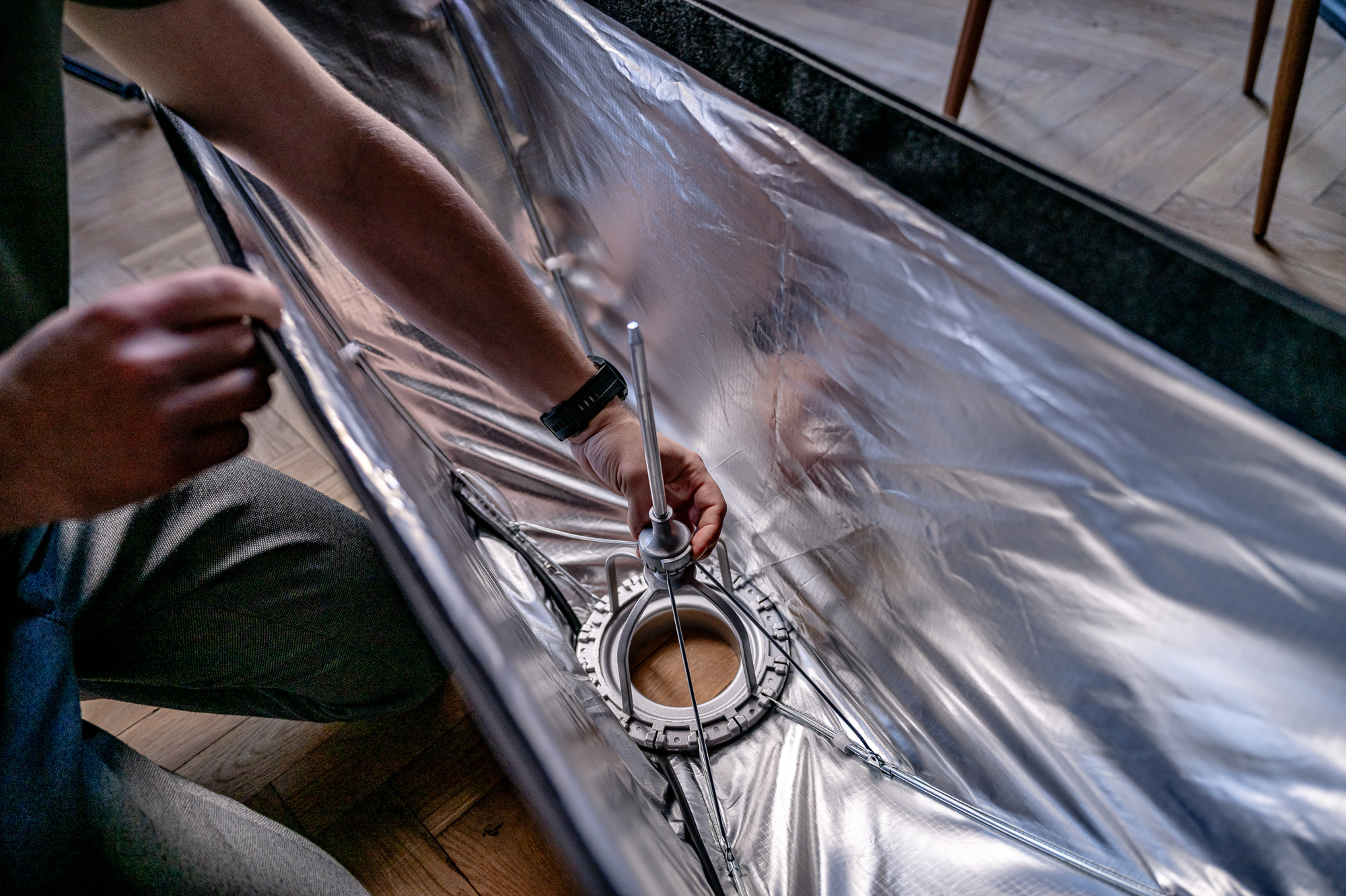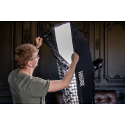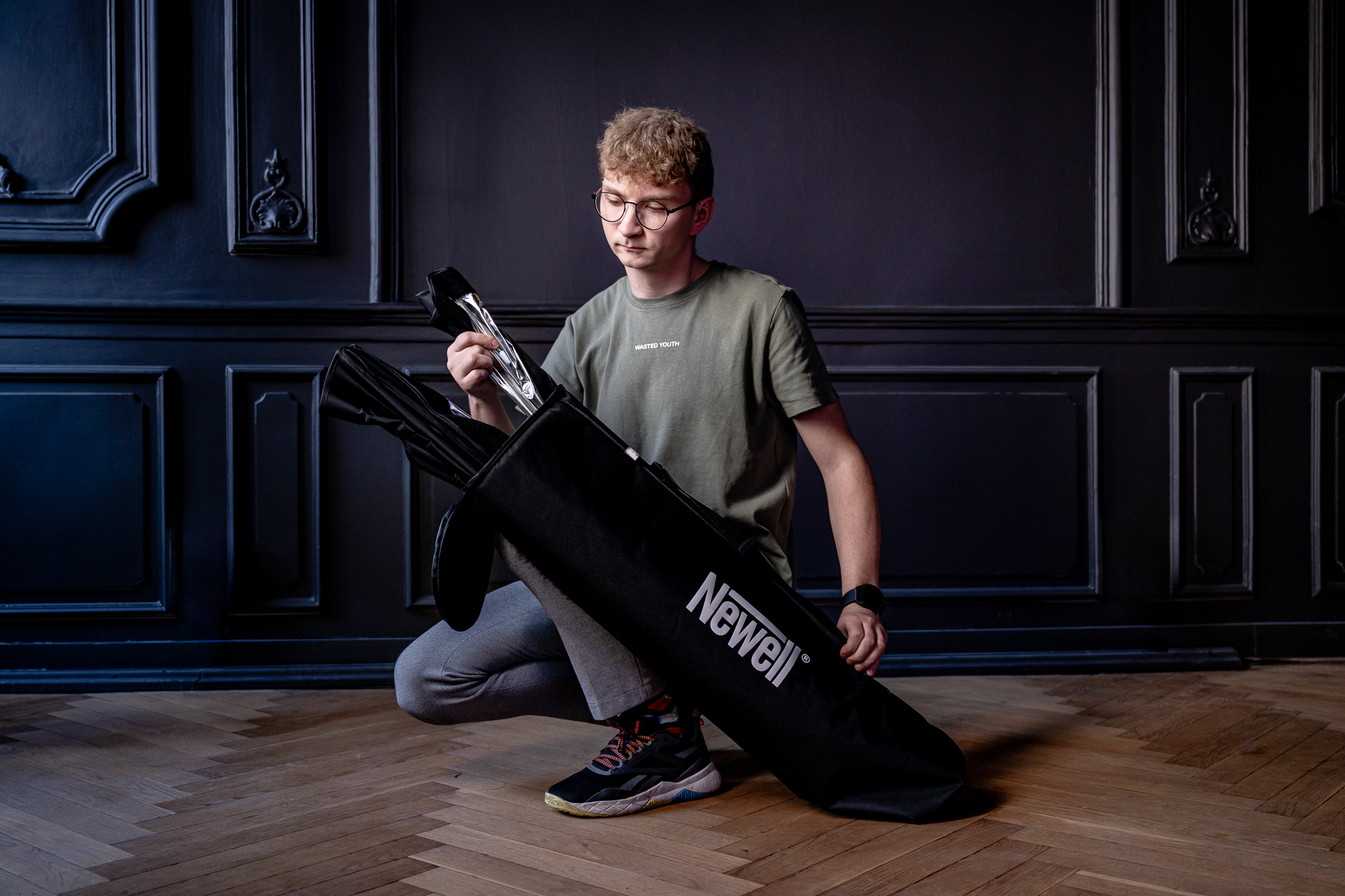 The Newell 35 x 140 cm rectangular softbox has been equipped with a state-of-the-art quick assembly system, which allows you to fold and unfold the modifier in no time. Thanks to the refined mechanism, tensioning the rods is trivial, and they lock automatically. When the session is over, all you have to do is press one button to release the latches and fold the softbox. The whole folding and unfolding mechanism resembles the one used in umbrellas. With this modifier you can work effortlessly in dynamic conditions, saving precious time.