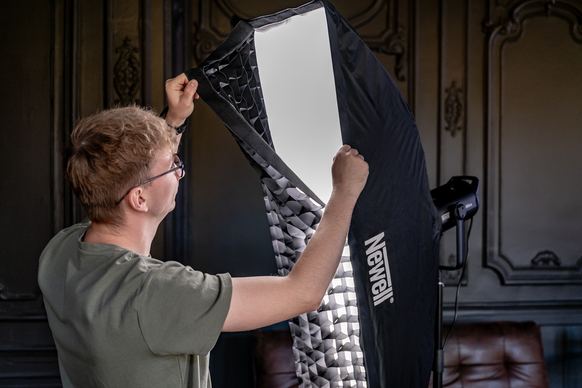 The Newell 35 x 140 cm rectangular softbox is a modifier that is perfect for traveling. Its lightweight design - weighing just 1.62 kg - and sturdy zippered carrying bag allow you to transport your equipment comfortably and safely. The bag is made of durable material that ensures protection of the softbox, grid and diffusers during transport, regardless of the conditions. This ensures that your light modifier will always be ready for use wherever you go.