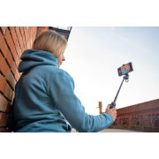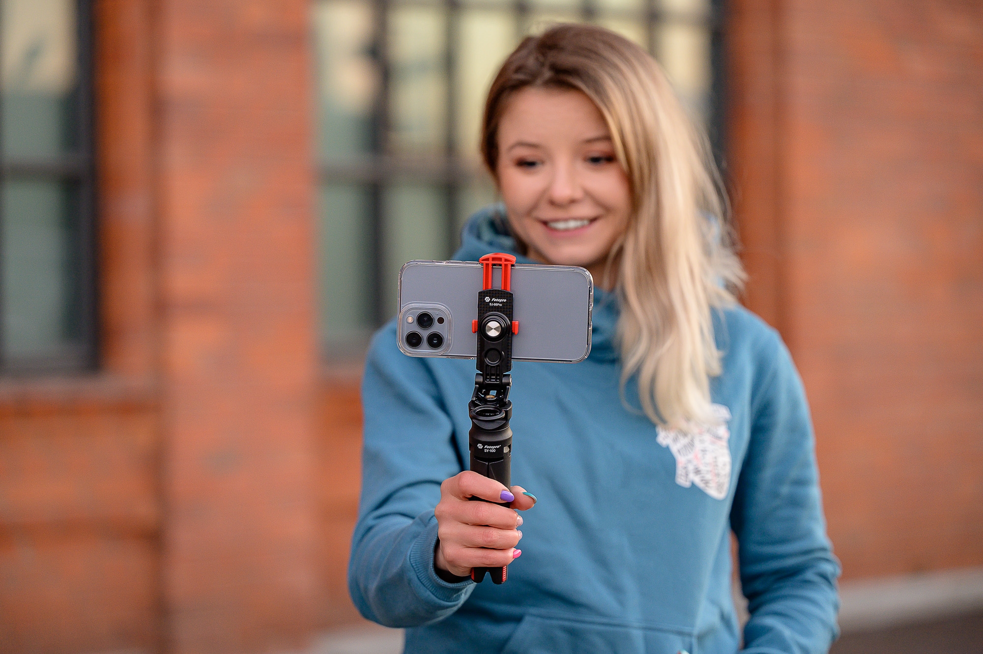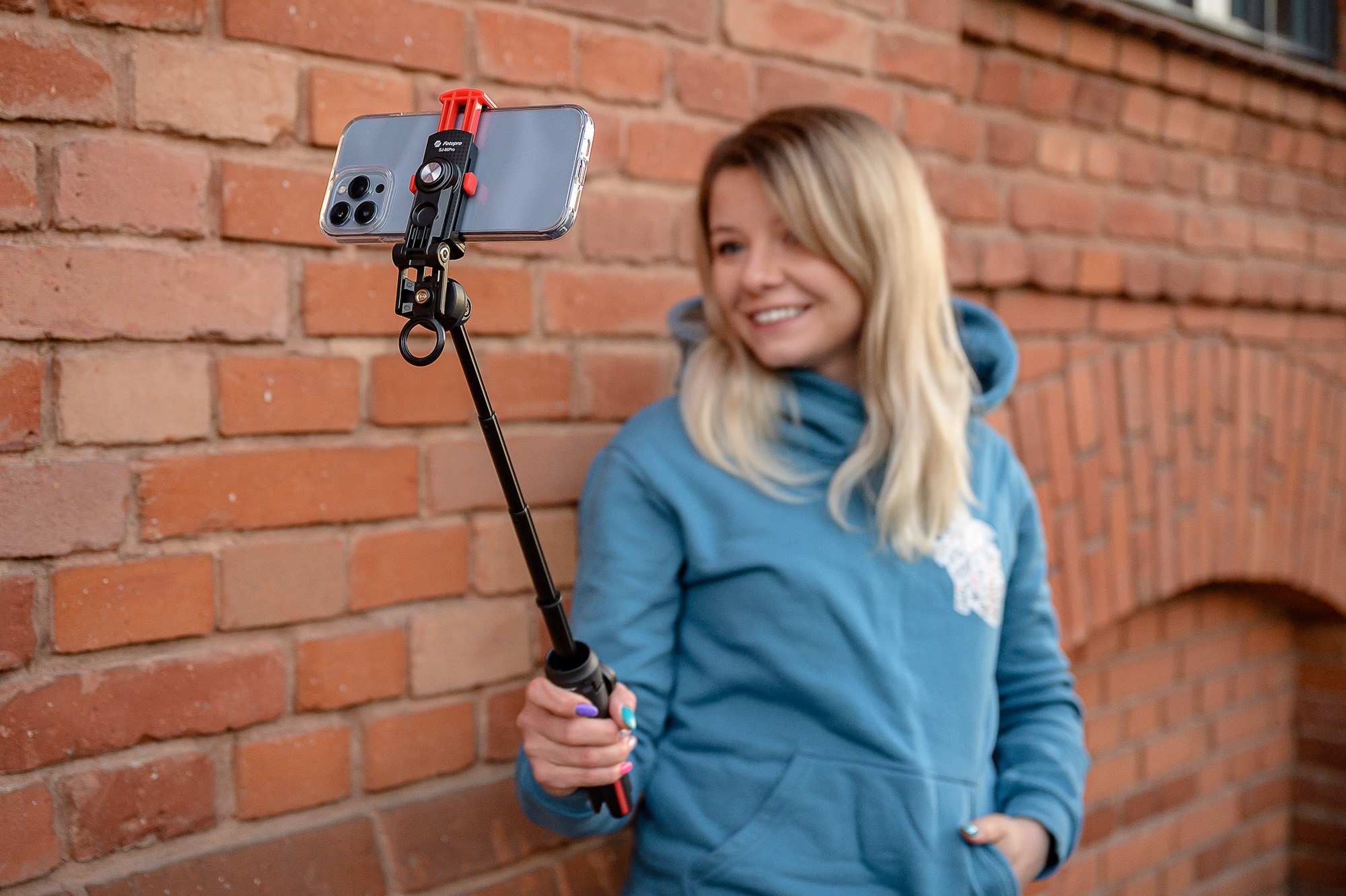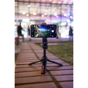 The Fotopro SY-100 tripod with SJ-86 Pro mount is an ideal solution for web creators and live broadcasters. It will also work well wherever video conferencing and webinars are often held, including remote learning. The included Bluetooth remote will allow you to take photos or start recording a video, without having to go to the tripod. You can precisely adjust the angle of your device using the bracket that supports smartphones from 56 to 86 mm wide. You'll also find an articulating arm on its back for installing an additional accessory (such as a light or microphone). The whole design will easily fit into any bag or backpack, allowing you to create a workstation wherever you come to make recordings!