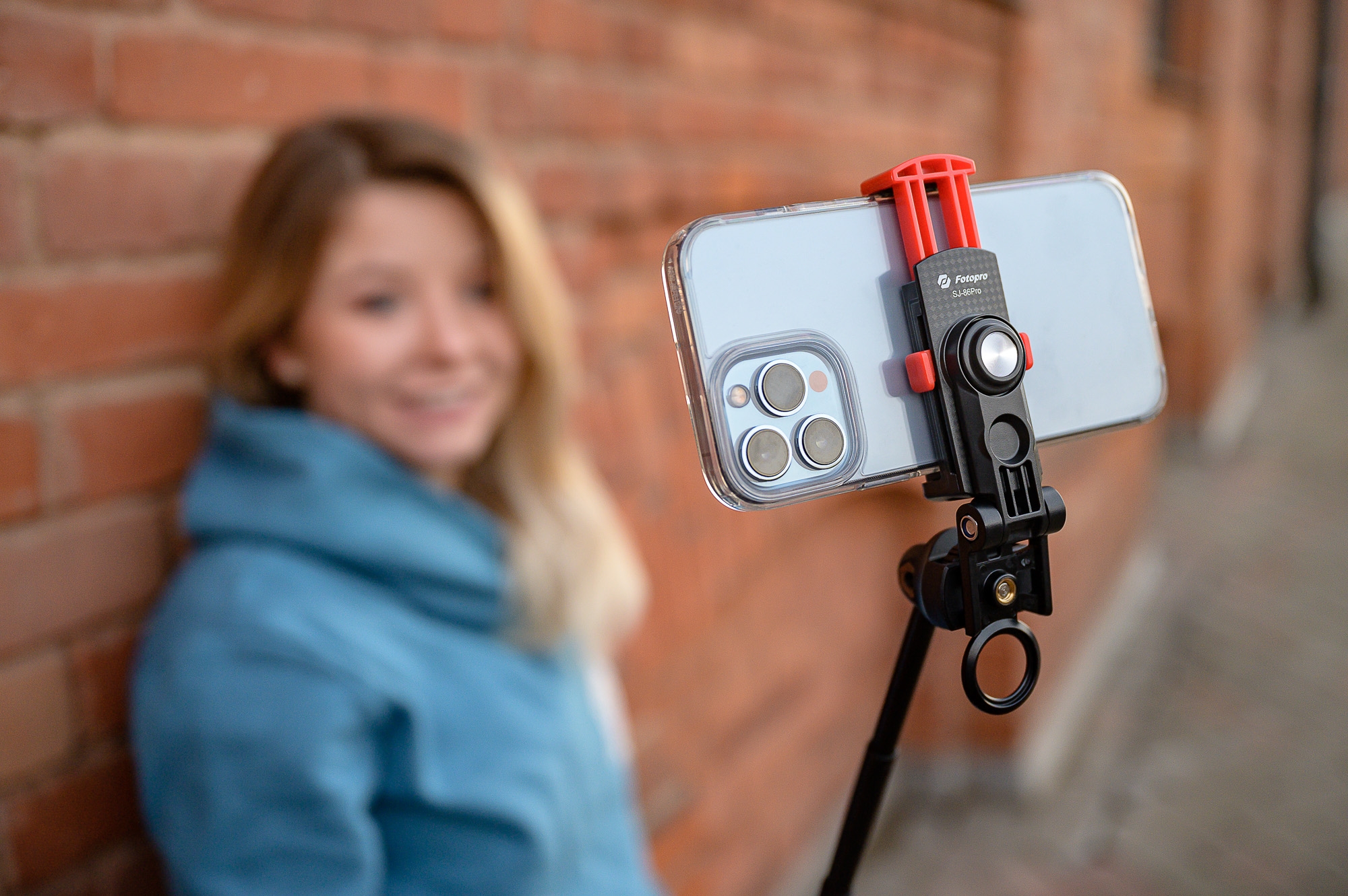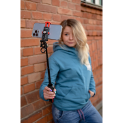 No need to waste time moving and setting up the individual components of your film and photography workstation. A smartphone holder with an additional mounting point in the form of a female 1/4" thread is all you need to conveniently adjust the frames to your needs, take advantage of an additional accessory and optimally manage the surrounding space, which can sometimes be very limited. Reach for an extra microphone, LED light or sports camera and create even better videos!