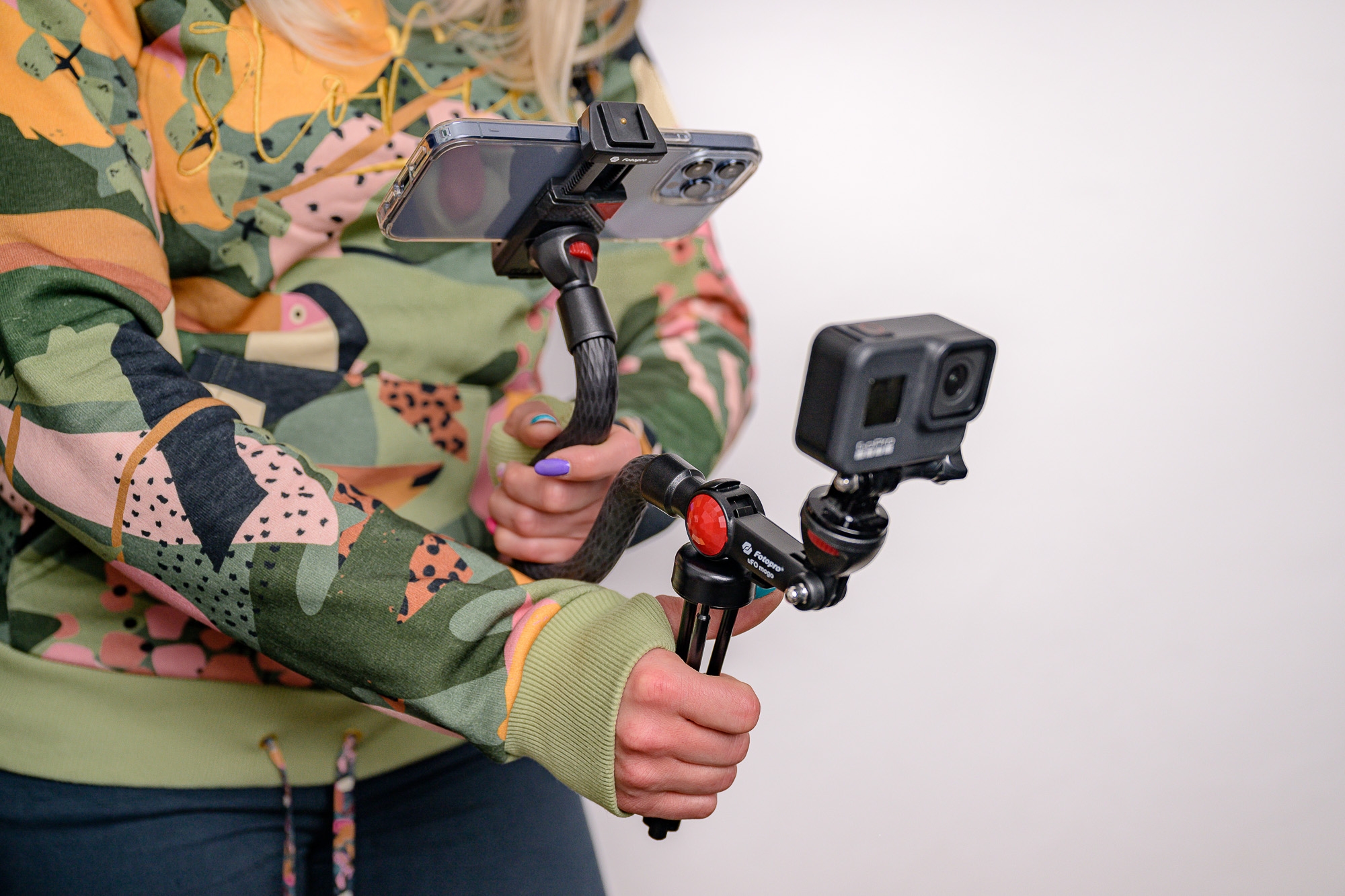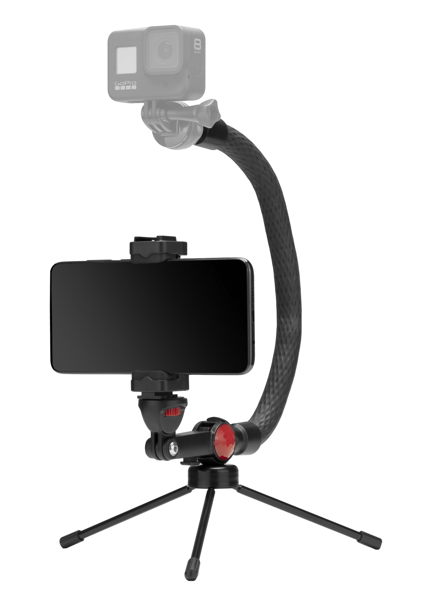 No need to waste time moving and setting up individual components of your film and photography workstation. With a smartphone holder, mounting points and a flexible arm, you can create the perfect space for recording and shooting. Whether you use an additional microphone, sports camera, or LED light during your broadcasts and vlogs, the necessary devices will easily connect to this ergonomic design and, if necessary, move it to a new location in seconds, placing everything in the ideal position.