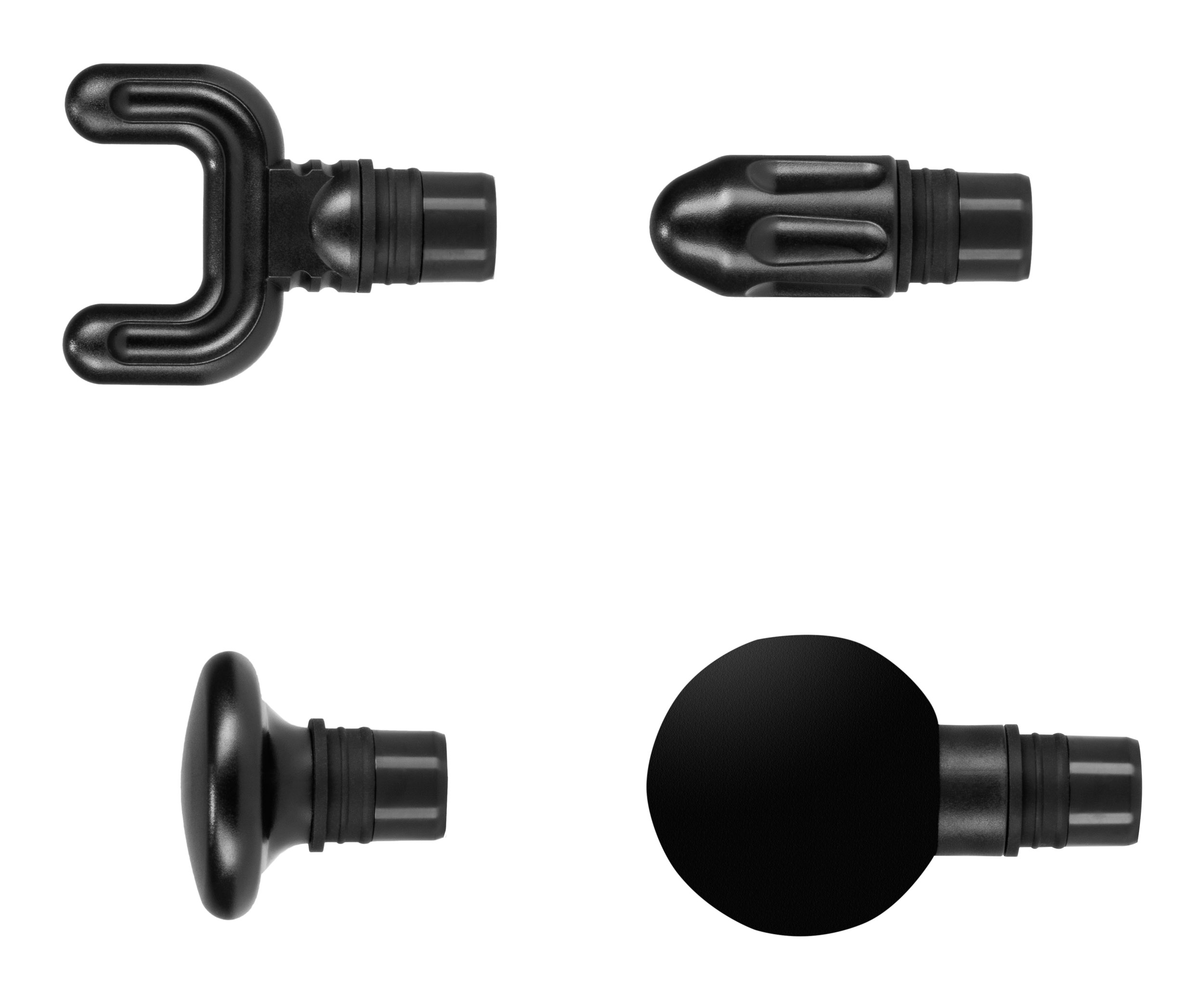 Głowica stożkowa - Akupresura w domowym zaciszu? Proszę bardzo. Ta końcówka dosięgnie tkanki głębiej położone oraz da solidny wycisk dużym mięśniom, takim jak mięśnie uda czy łydki. Użyj jej w pracy nad swoimi punktami spustowymi.