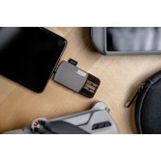 Hub Newell OTG 3 w 1 jest kompatybilny nie tylko z kartami pamięci SD oraz micro SD. Na obudowie urządzenia znajdziesz również gniazdo USB 3.0. Szybko i wygodnie podłączysz do niego pendrive lub dysk zewnętrzny, gdy wszystkie porty w komputerze będą już zajęte.