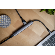 Hub Newell 6 w 1 z łatwością zmieści się w plecaku lub torbie na laptopa. Urządzenie wykonano z trwałego stopu aluminium zapewniającego trwałość i ultralekkość. Dzięki grafitowemu wykończeniu i opływowym kształtom hub świetnie wpisuje się we współczesne standardy minimalistycznego wzornictwa.