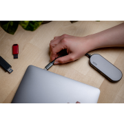 Minimalizm nowoczesnych urządzeń nie zawsze idzie w parze z funkcjonalnością. Jeśli pracujesz z kilkoma dyskami zewnętrznymi lub podłączasz do komputera dodatkowe akcesoria, liczba gniazd dostępnych na obudowie Twojego komputera może okazać się niewystarczająca. Wówczas z pomocą przychodzi hub Newell 7 w 1. To niewielkie i poręczne urządzenie zapewni Ci dostęp do 3 portów USB 3.0, 1 portu USB-C wspierającego standard Power Delivery 100 W, gniazda HDMI 4K oraz czytników kart pamięci – SD i micro SD.