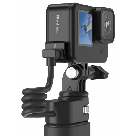 Otwór na przewód USB-C umożliwia wygodne podłączenie power banku lub selfie sticka z funkcją ładowania. Dzięki temu możesz prowadzić nieprzerwane nagrywanie nawet przez wiele godzin – bez konieczności otwierania standardowej klapki i ryzykowania uszkodzenia kamery. Odpowiednio wyprofilowany otwór dodatkowo chroni kabel przed przypadkowym wyrwaniem, nawet podczas dynamicznych ujęć.