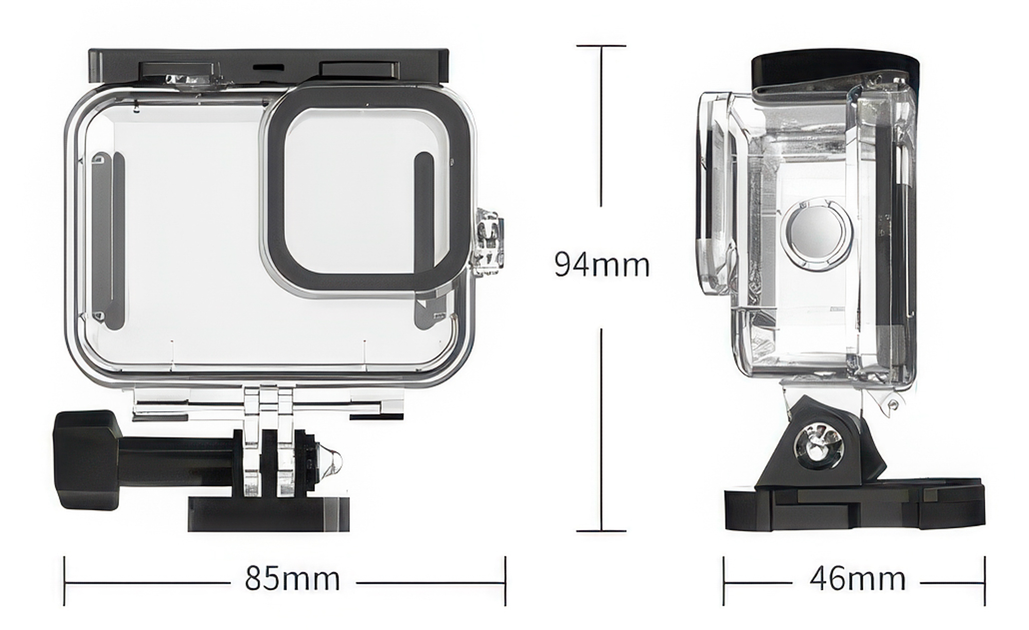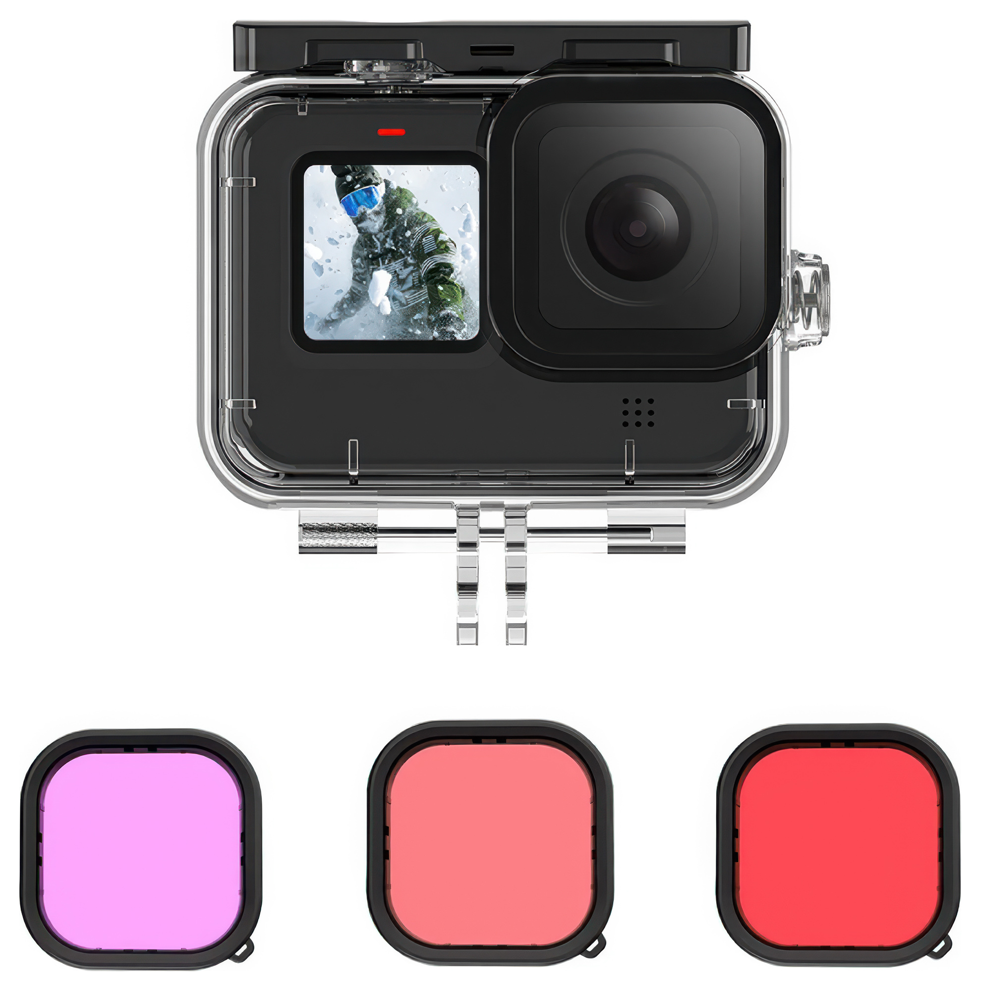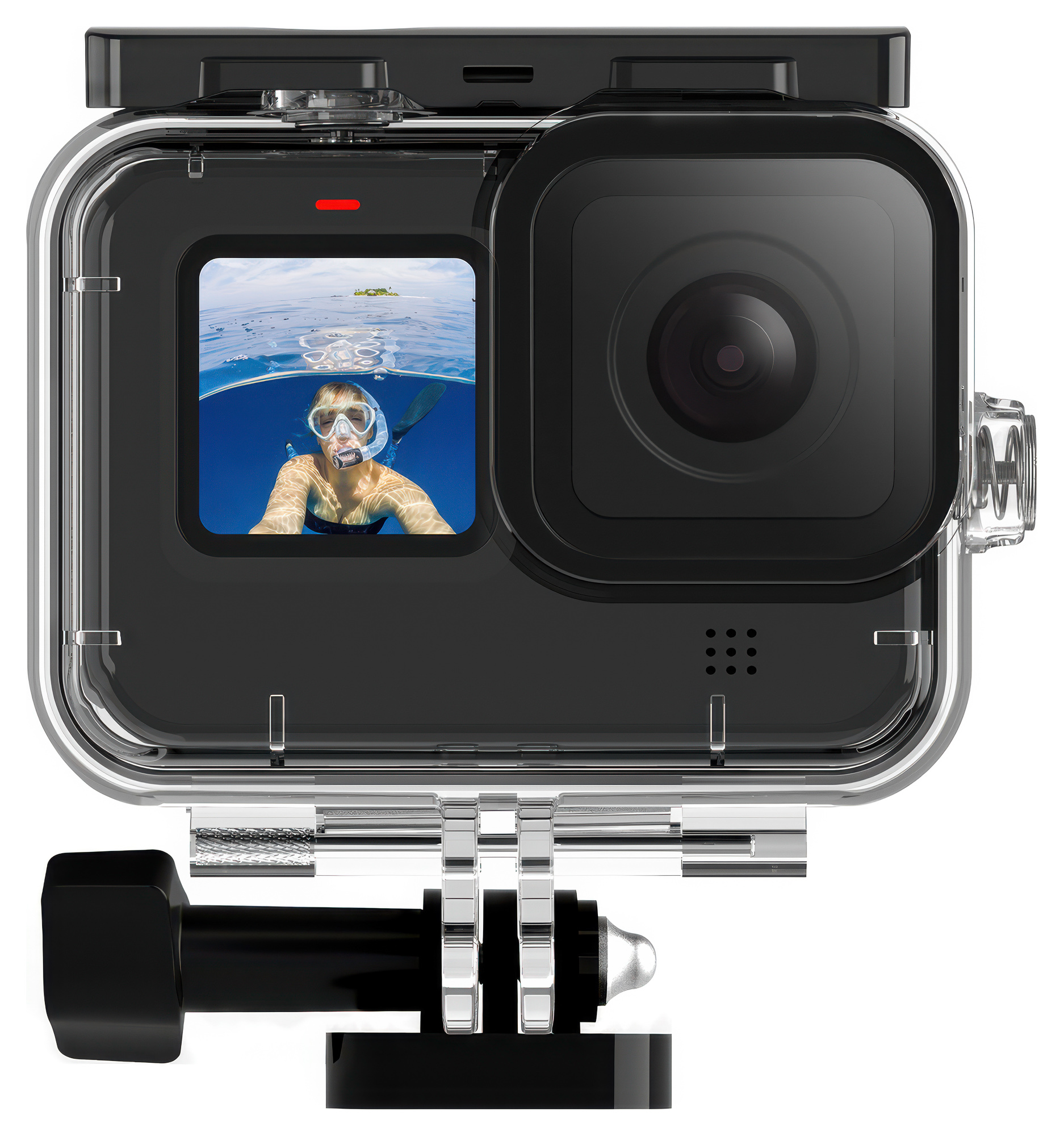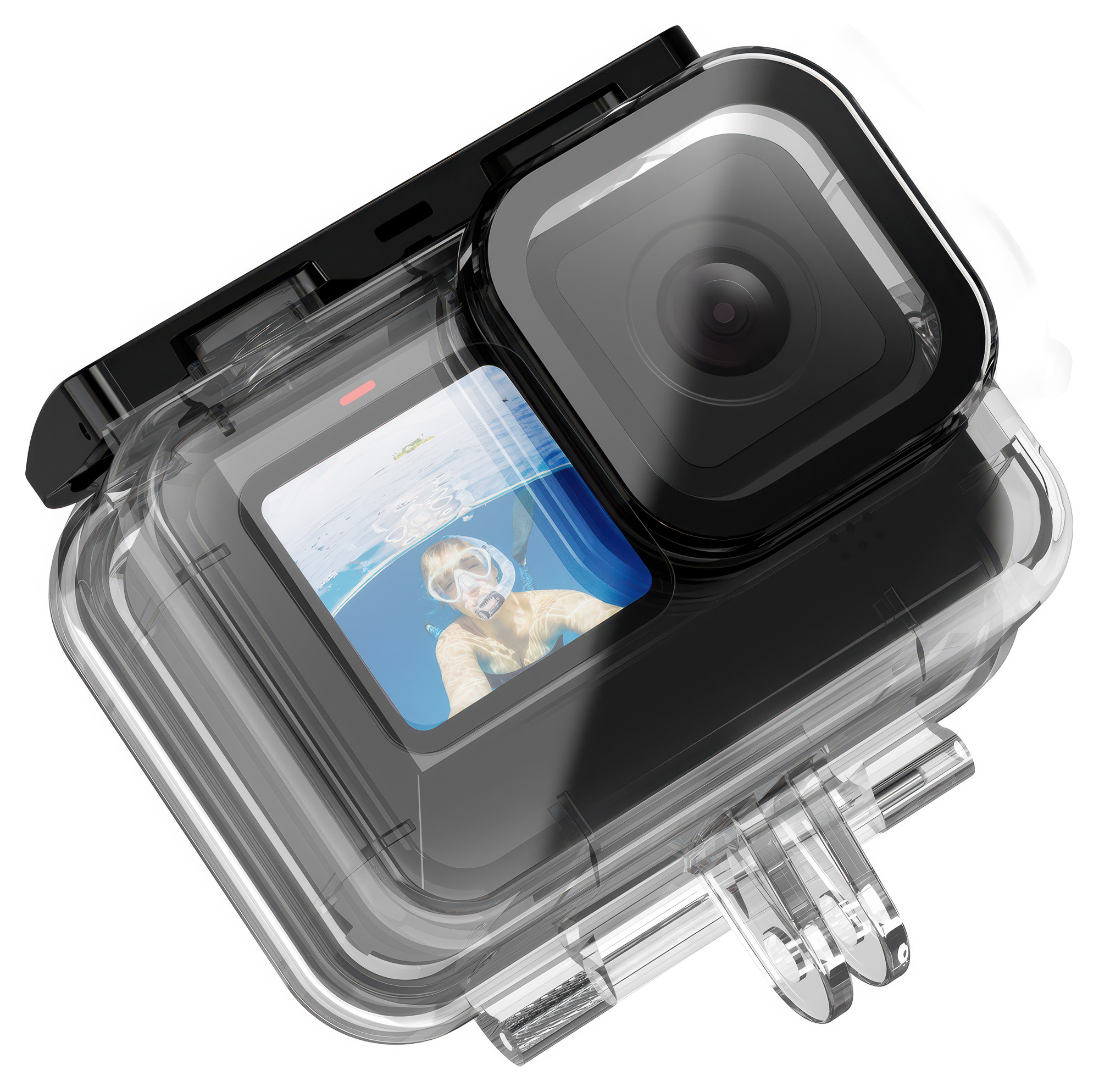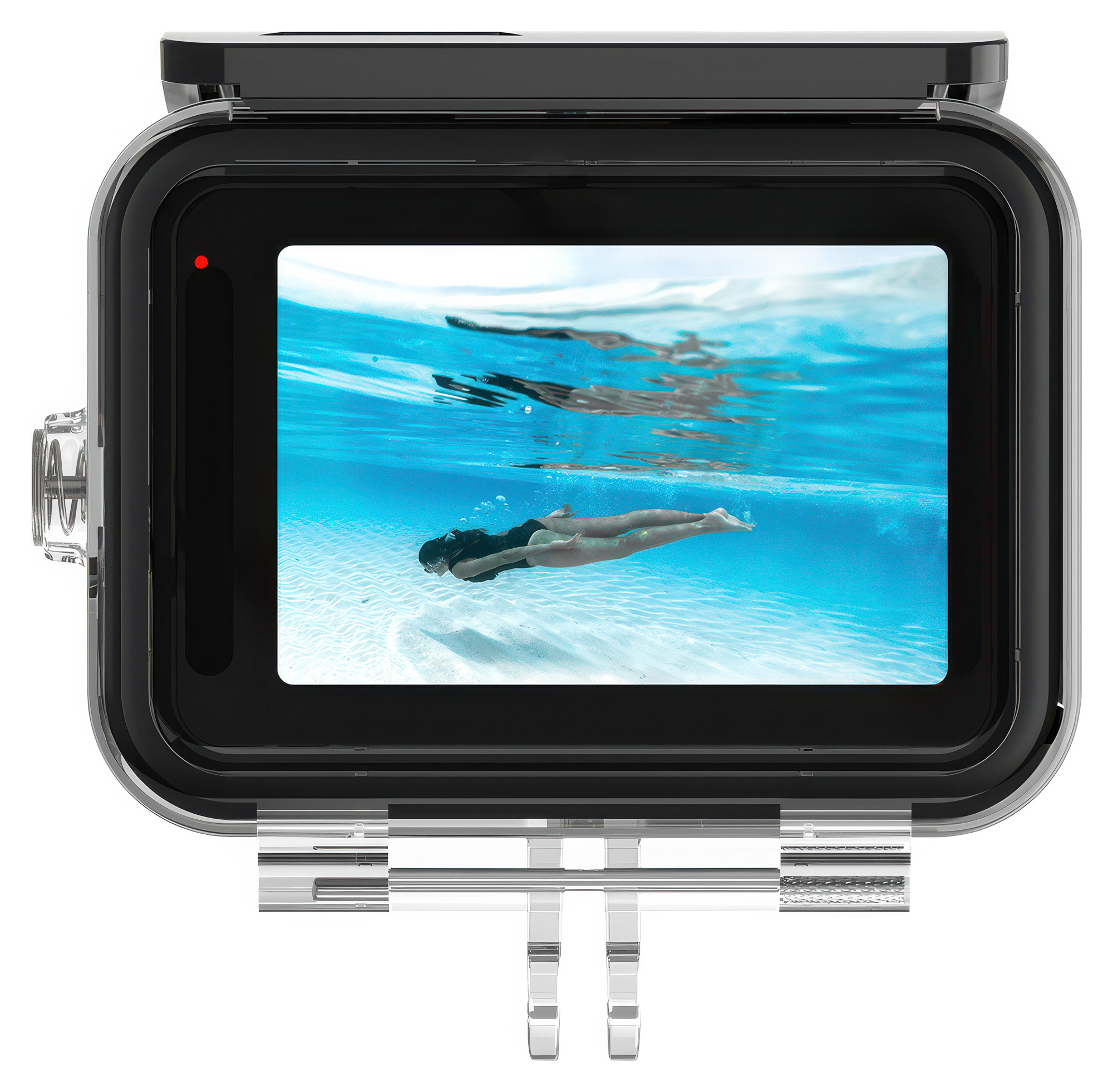 Frontowy element optyczny z hartowanego szkła pozwala zachować perfekcyjną ostrość i kontrast, chroniąc obiektyw przed zarysowaniami i mikrouszkodzeniami. Wysoka przepuszczalność światła (do 95%) gwarantuje naturalne barwy i przejrzystość zarówno pod wodą, jak i nad jej powierzchnią. Przezroczysty materiał, z którego wykonano obudowę wodoodporną Telesin GP-WTP-901 ułatwia kontrolę kadru oraz podgląd materiału tuż po wynurzeniu. To ochrona, która nie odbiera jakości – Twoje ujęcia pozostają szczegółowe, a refleksy i zafarby są skutecznie minimalizowane.