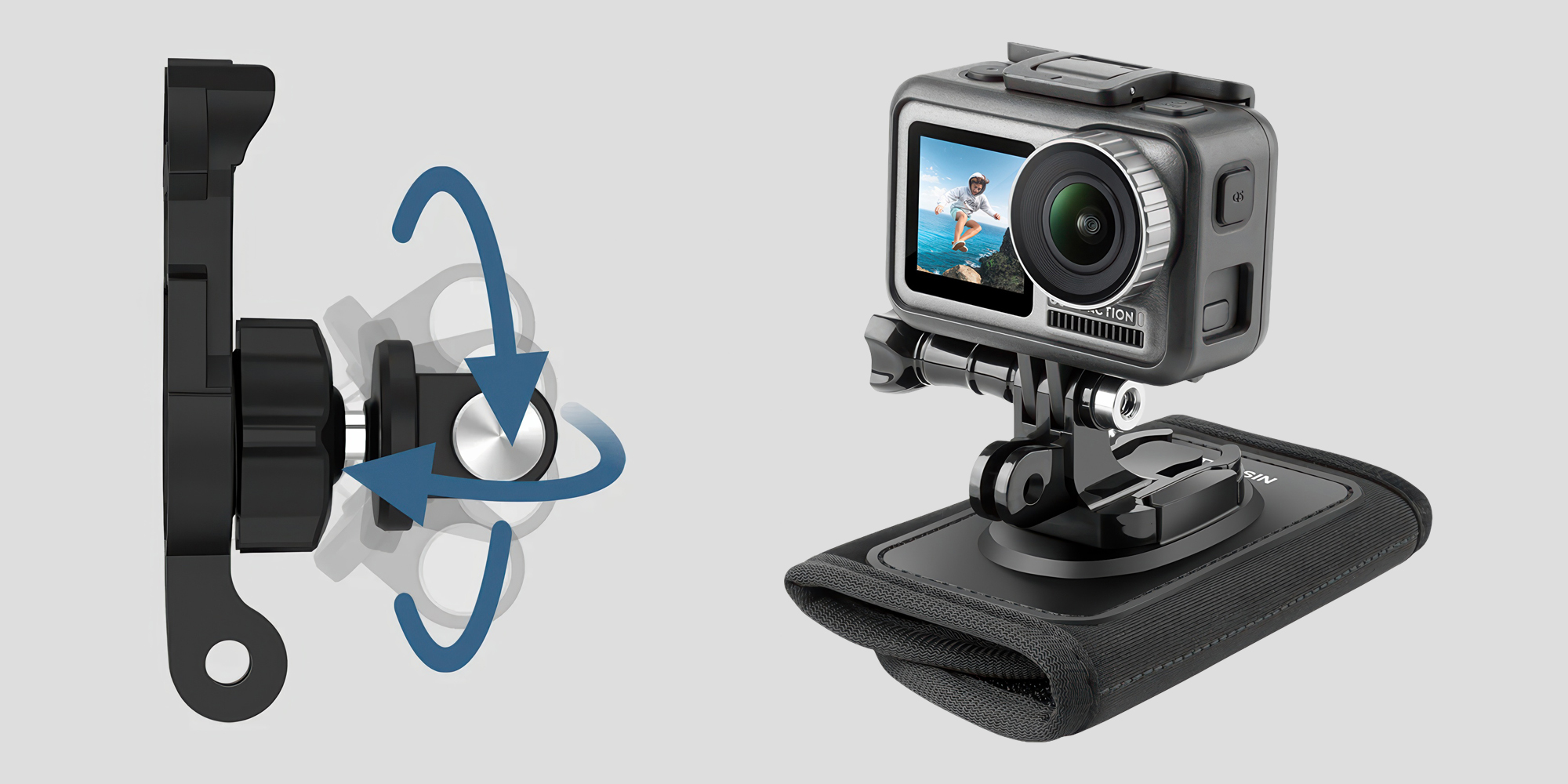 W zestawie z mocowaniem na plecak Telesin GP-BPM-005 znajdziesz specjalną klamrę "J-Hook Buckle", która umożliwia błyskawiczne wpinanie i wypinanie kamery. Wieńczy ją kulowa głowica 360°, która pozwala precyzyjnie ustawić kadr, gdy filmujesz z perspektywy ramienia. Klamra oferuje też 2 punkty montażu typu GoPro – z 2 i 3 zębami. Dzięki nim połączysz mocowanie z kamerą lub przypniesz je do innego urządzenia.