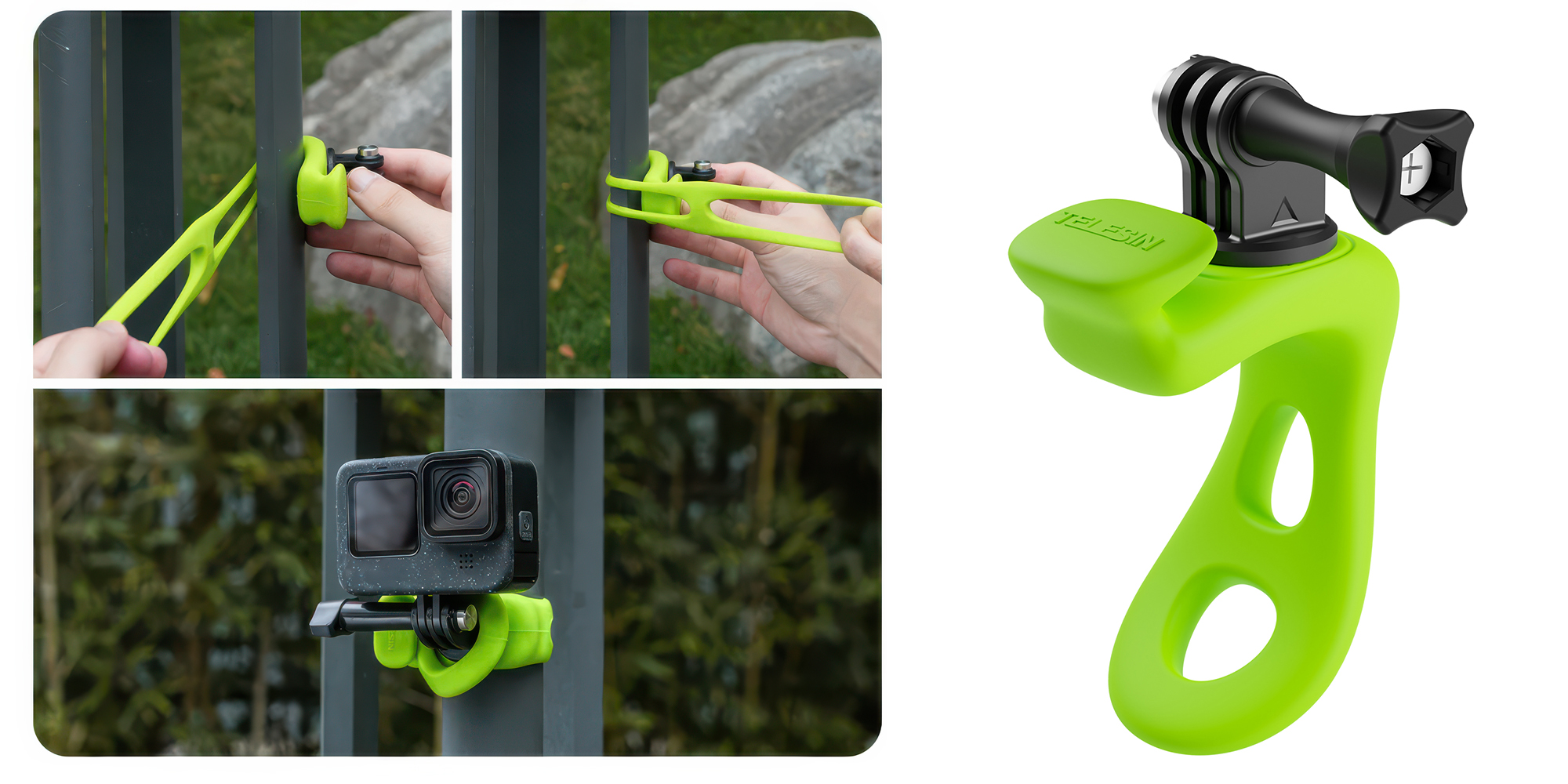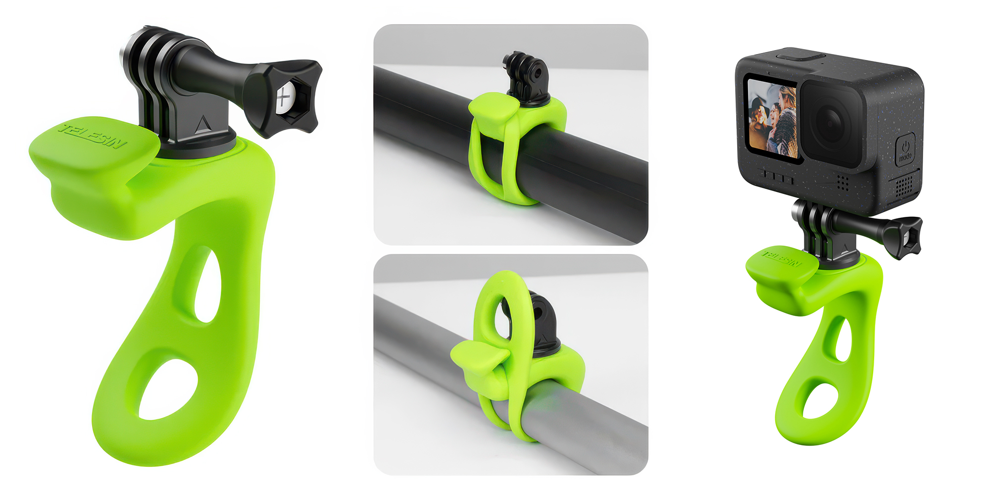 Telesin TLQ-001 to wyjątkowo uniwersalne mocowanie, które pozwala zamontować kamerę sportową na praktycznie każdej rurce, poręczy lub drążku. Elastyczna konstrukcja z grubego silikonu dopasowuje się do różnych kształtów i średnic (od 22 mm do 60 mm), dzięki czemu uchwyt sprawdzi się na kierownicy roweru, wózku dziecięcym, balustradzie balkonowej, wiośle, wózku na zakupy, a nawet na nodze stołu czy krześle. To niezawodne rozwiązanie do ujęć z nietypowych perspektyw – w plenerze, w ruchu i w codziennych sytuacjach.