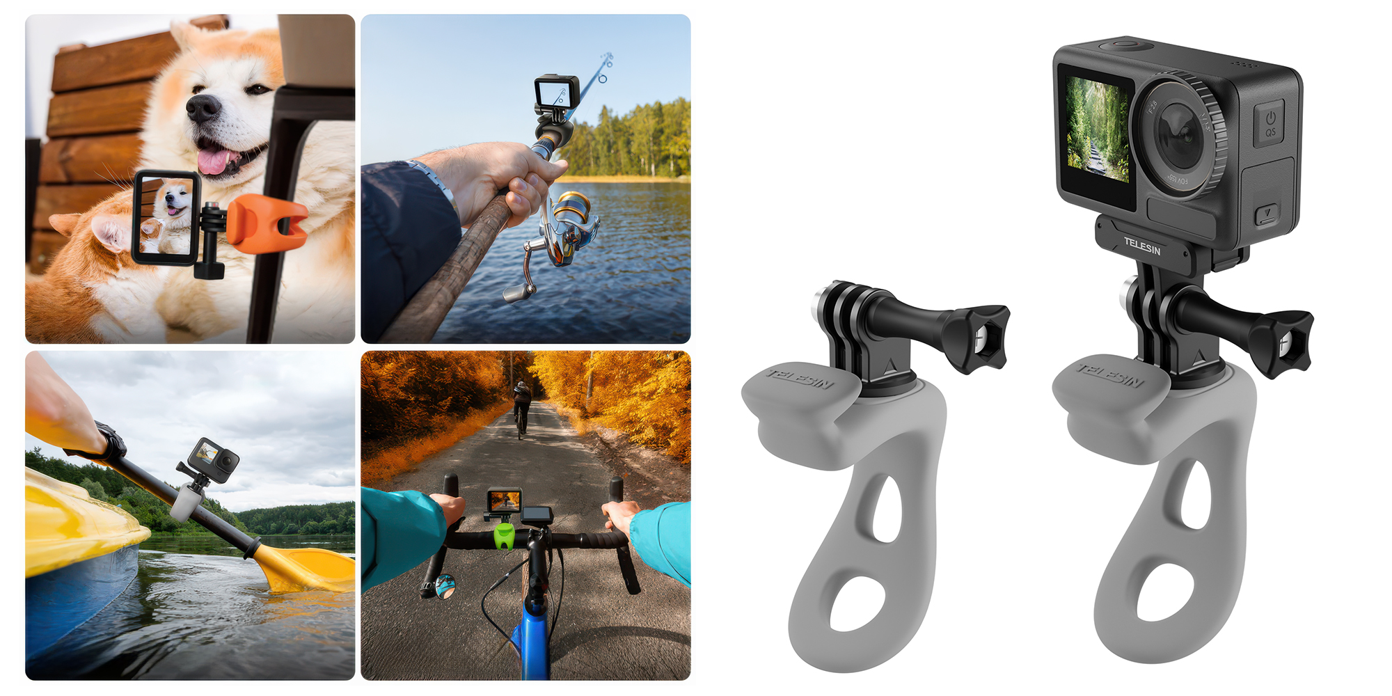 Telesin TLQ-001 został zaprojektowany z myślą o bezpośredniej współpracy z najpopularniejszymi kamerami sportowymi na rynku. Połączysz go ze sprzętem takich marek jak GoPro, DJI, Insta360 i innych urządzeń oferujących trójzębne mocowanie. Nie potrzebujesz dodatkowych adapterów – kamera pasuje od razu po wyjęciu z opakowania. To duże ułatwienie, które pozwala szybciej rozpocząć nagrania i skupić się na kreatywnej pracy.