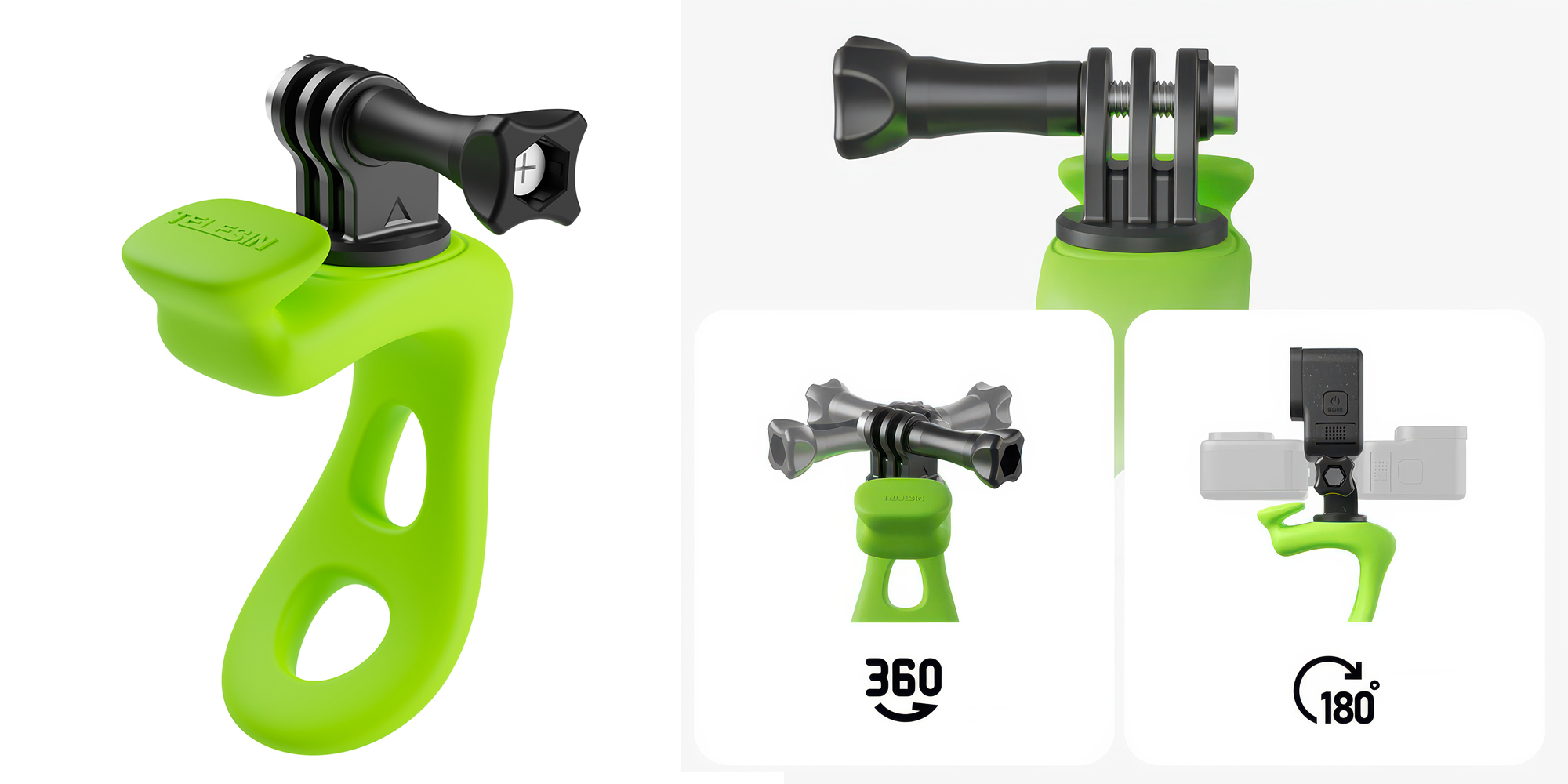 Mocowanie elastyczne Telesin TLQ-001 to wszechstronne i wyjątkowo wygodne akcesorium do montażu kamery na rurach, poręczach, kijkach lub nogach statywów. Elastyczna konstrukcja z grubego silikonu zapewnia pewny chwyt i doskonałe tłumienie drgań, co przekłada się na stabilne, płynne ujęcia nawet w ruchu. Kompatybilność z kamerami sportowymi takich marek jak GoPro, DJI i Insta360 sprawia, że nie potrzebujesz dodatkowych adapterów. Mocowanie obraca się w zakresie 360º, co zapewnia lepszą kontrolę. Szybki montaż bez narzędzi i odporność na trudne warunki atmosferyczne czynią ten uchwyt idealnym wyborem dla osób aktywnych, które chcą nagrywać z nietypowych perspektyw – w podróży, na rowerze lub w domu.
