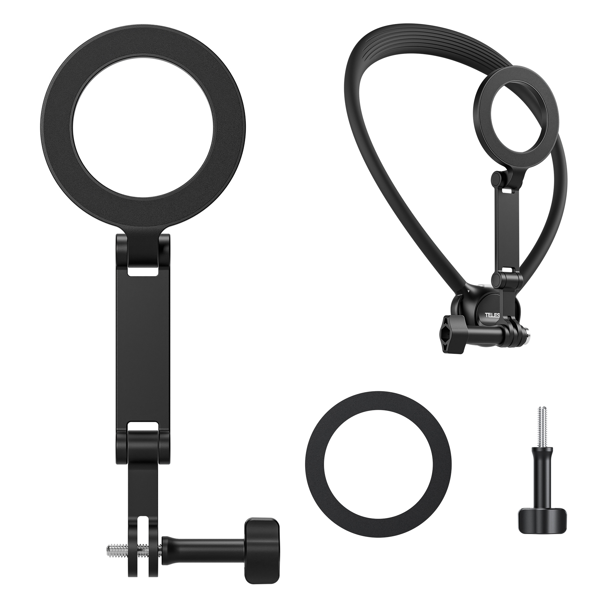 Uchwyt magnetyczny Telesin P7-MB-01 pozwala połączyć smartfon z całą gamą akcesoriów z mocowaniem GoPro. Wystarczy wpiąć go w klasyczne trójzębne gniazdo – umieszczone na opasce na szyję, uprzęży piersiowej przyssawce czy kierownicy roweru – i zabezpieczyć dołączoną do zestawu śrubą. Dzięki temu Twój smartfon pozostanie w zasięgu wzroku, niezależnie od tego, czy służy Ci do nagrywania, robienia zdjęć, czy jako ekran podglądowy. To szczególnie przydatne, gdy masz już zestaw akcesoriów Telesin zgodnych ze standardem montażu GoPro i chcesz używać ich z telefonem zamiast kamery sportowej.