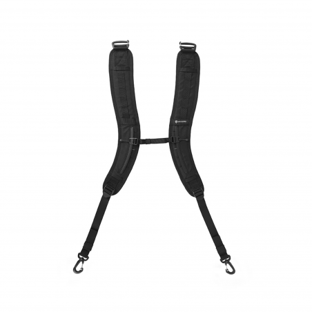Paski do torby Wandrd Carryall Duffel pozwalają nosić ją w wygodnej formie plecaka, zapewniając komfort i swobodę ruchu w każdej sytuacji. To dokładnie ten sam zestaw szelek, który dołączany jest do torby Carryall Duffel przy zakupie – idealny, gdy chcesz mieć zapasowy komplet lub potrzebujesz wymiany. Paski montowane są za pomocą solidnych karabińczyków, które umożliwiają szybkie dopięcie i odpięcie. W zestawie znajduje się również pas piersiowy, który zwiększa stabilność podczas poruszania się. Na szelkach znajdują się szlufki, do których można przymocować dodatkowe paski lub akcesoria. To praktyczny system dla tych, którzy lubią mieć wszystko pod ręką.